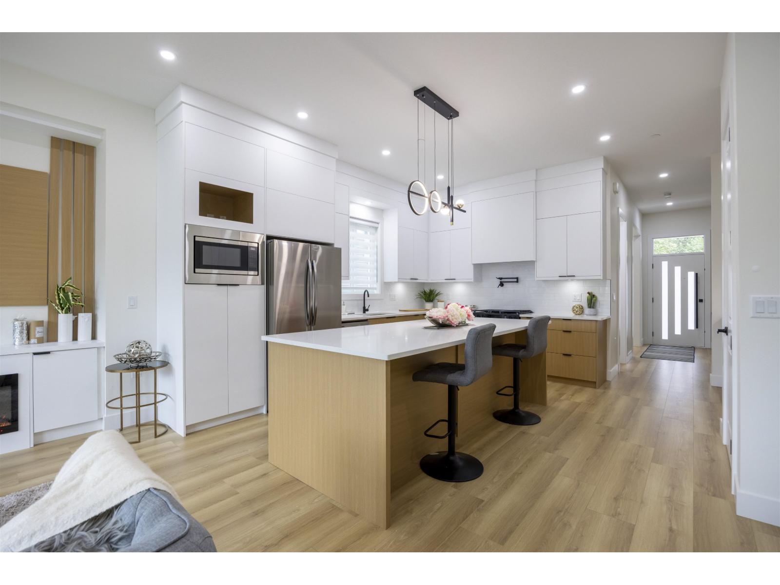 Discover this exceptional new development in Willoughby featuring half-duplex homes with no strata fees. These modern 4-bedroom, 5-bath residences are designed for ultimate comfort and style, offering 10-foot ceilings on the main floor, expansive windows that fill the home with natural light, a chef-inspired kitchen with quartz countertops and premium appliances, and a spacious primary suite with a walk-in closet and serene park views. The fully finished basement includes a bedroom, media room, and large living area-perfect for extended family or guests. Ideally located near Donna Gabriel Robins Elementary, Peter Ewart Middle School, and R.E. Mountain Secondary, this community delivers a perfect blend of elegance, functionality, and convenience for your dream home. (id:52823)