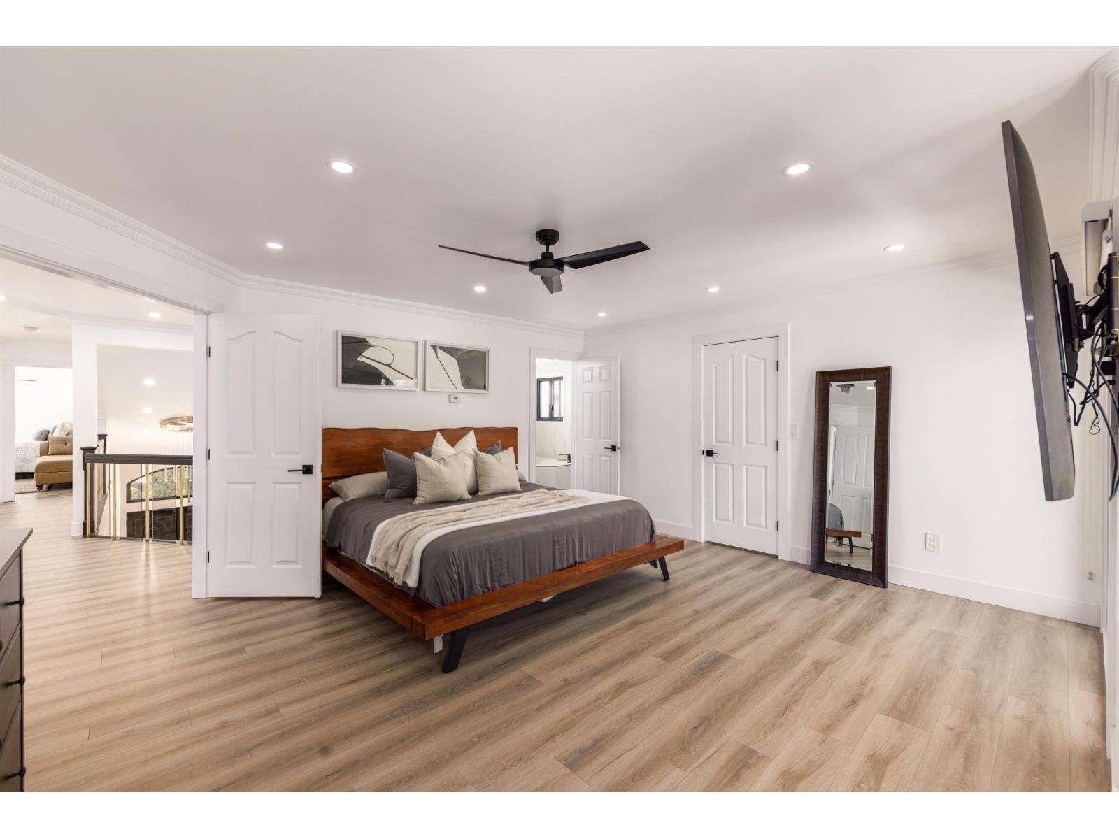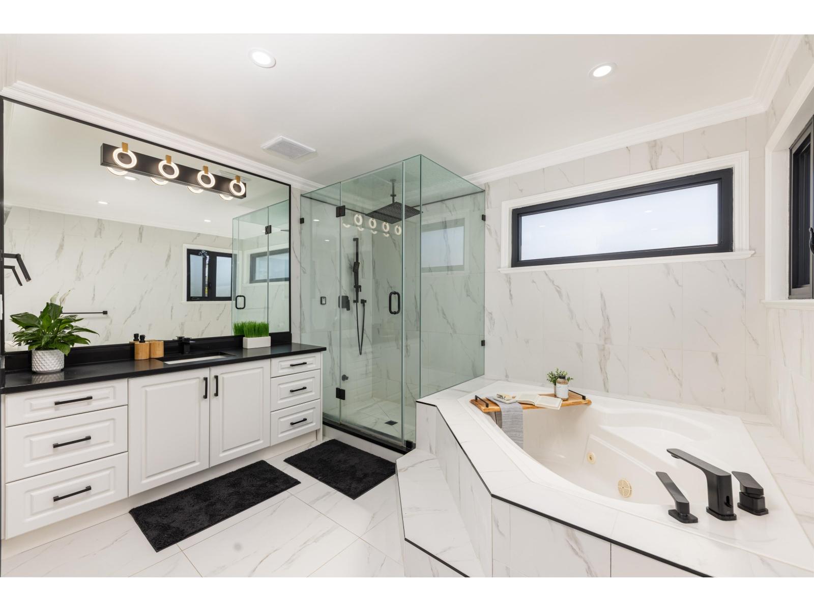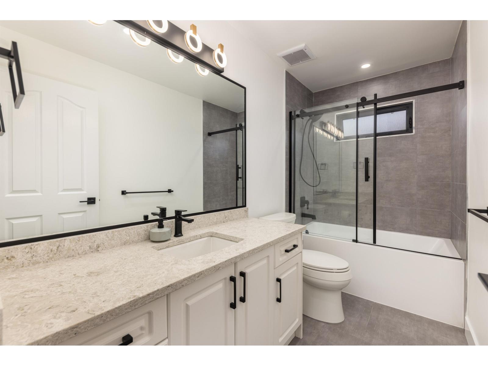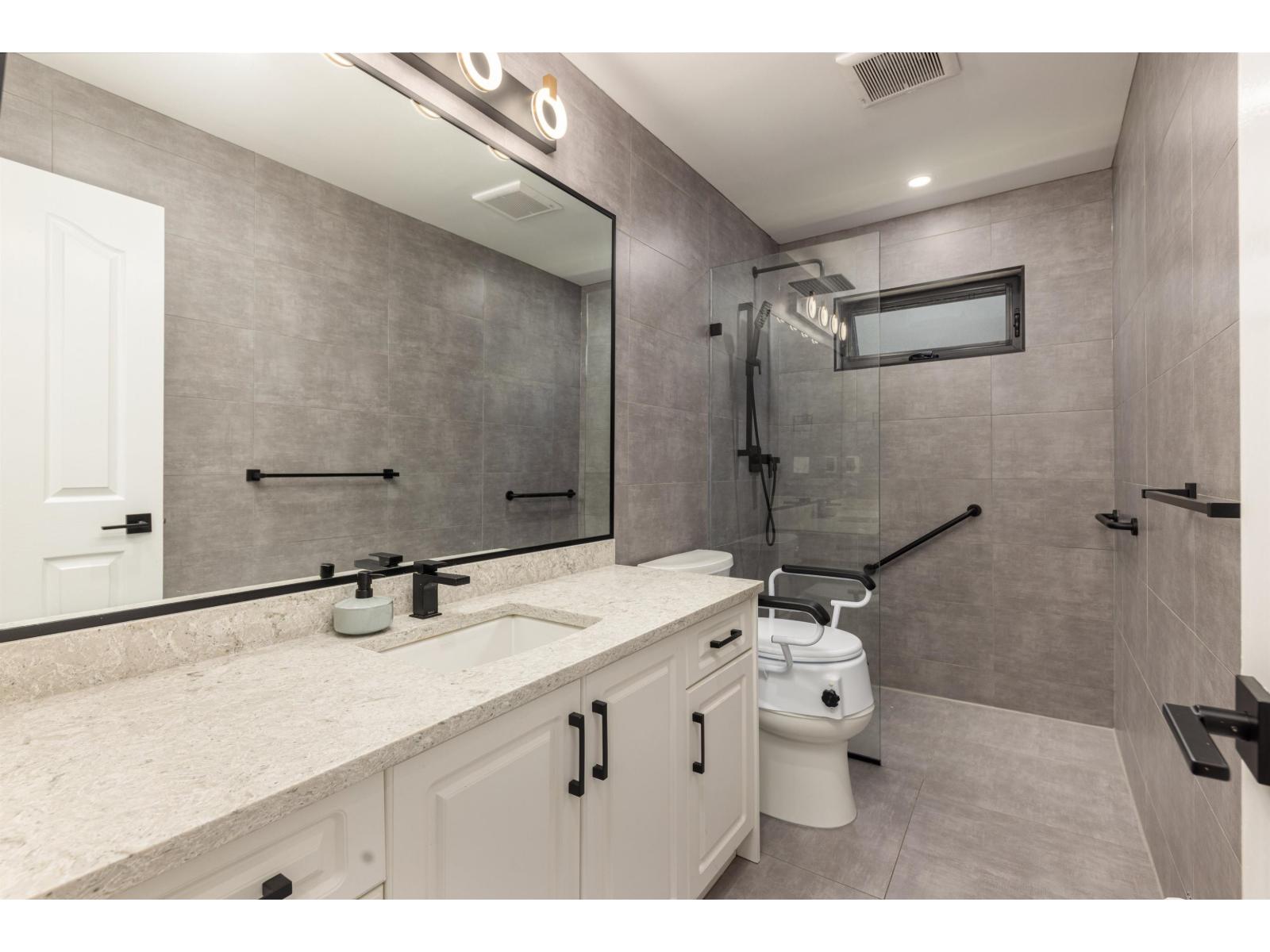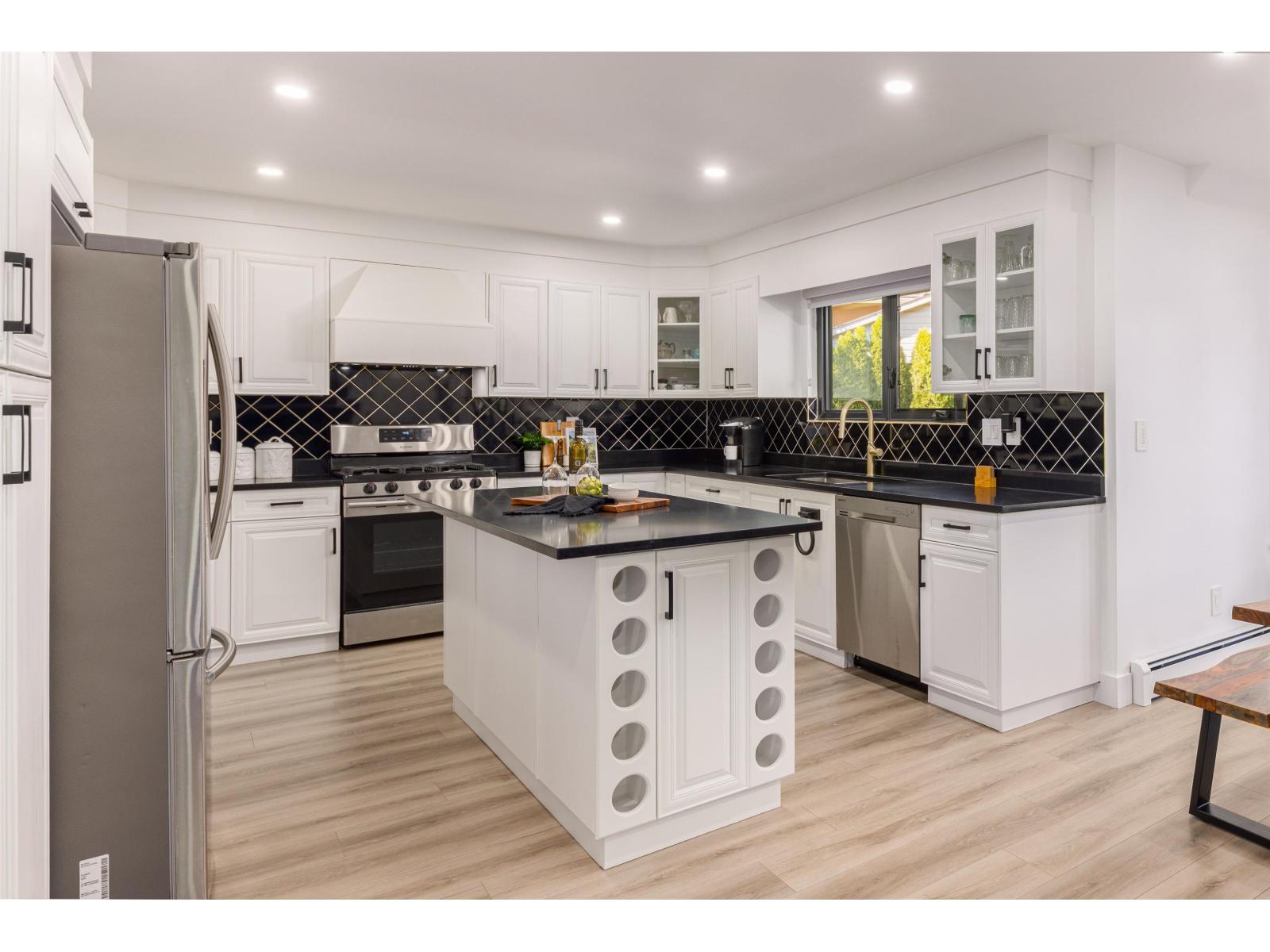 Beautifully updated Fleetwood home in a quiet cul-de-sac, steps from schools, shops and parks. Offers 4 bedrooms up including a new secondary master with full bath and electric fireplace plus a rec/theatre room. Upgrades include new roof, triple glazed high energy certified windows, 60+ LED pot lights, laminate floors, quartz counters, fresh paint, and fully renovated baths. The master has a steam shower, jacuzzi and smart toilet. The main floor bath has accessibility features beside a bedroom or office. Maple kitchen opens to a patio, elevated lawn ideal for gardening, and perimeter cedars for privacy. Includes 2 bedroom mortgage helper with new kitchen and laundry, serviced hot water tank and boiler, and appliances just 3 years old. Walk to Fleetwood Park Secondary and Coyote Creek Elem. (id:52823)