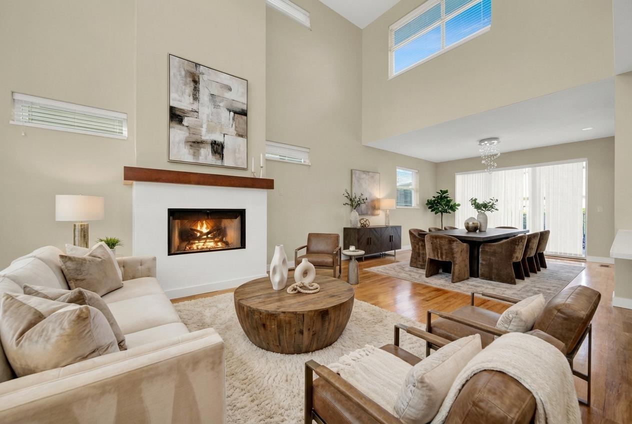 $740 MonthlyVINTERRA - Prime Location Community. This exceptional residence feels like a detached home within a townhome setting. A luxurious primary bedroom on the main level features a spa-inspired ensuite. Striking architecture and soaring 19-foot ceilings create an elegant open-concept living area. The bright, high-end kitchen flows seamlessly into a generously sized dining room, ideal for entertaining. The upper level features two large bedrooms, plus a balcony-style open workspace. Each bedroom has its own ensuite. The lower level offers a spacious fourth bedroom, a versatile karaoke/media room with wall-to-wall decorative mirrors and along with three storage areas. Private front and back yards provide an excellent summer outdoor lifestyle with added privacy. Recent updates include interior paint and crystal lighting (2023), a renovated bathroom and ceiling drywall (2025), refreshed hardwood floors, an upgraded kitchen, and brand-new appliances. Conveniently located near shopping, dining, and all levels of schools. (id:52823)