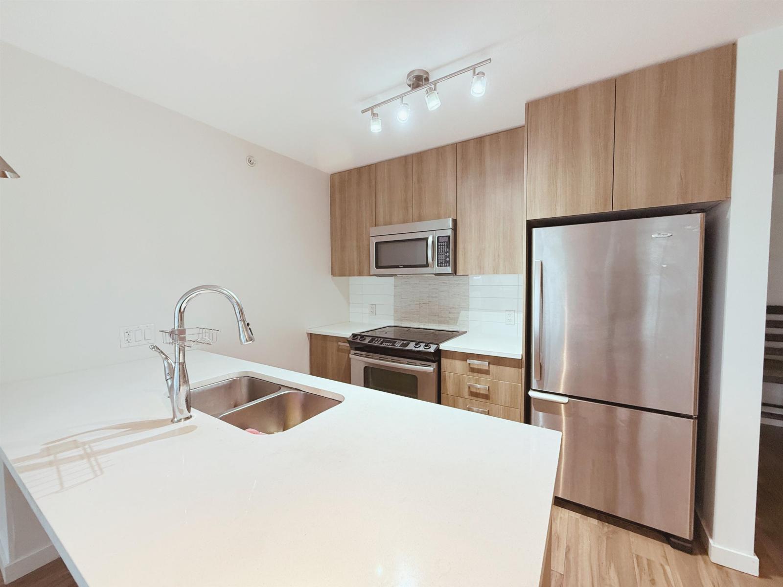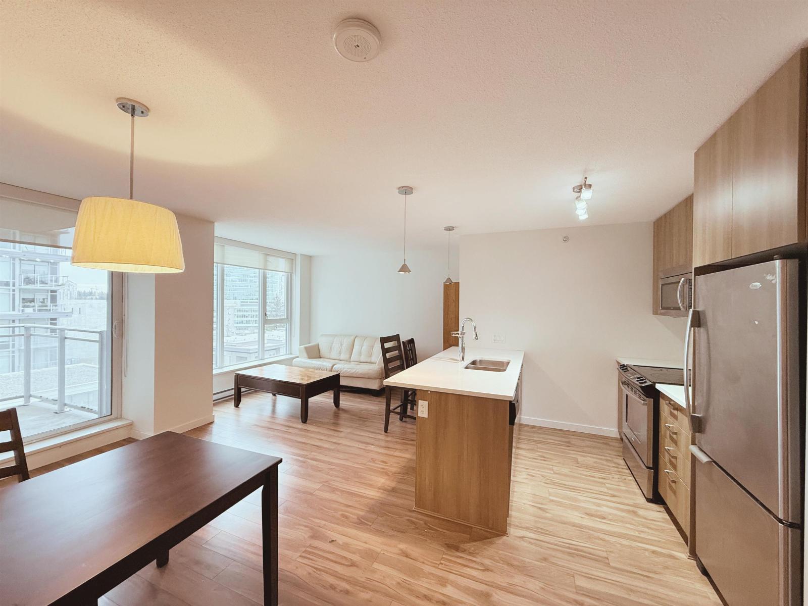 1 Bed + Den Condo for Rent at Surrey Central - Ultra University West Village. Prime location within walking distance to SkyTrain, bus loop, library, City Hall, recreation centre, SFU Surrey campus, shopping mall, T&T Supermarket, and restaurants. This bright, east-facing private unit features hardwood laminate flooring, a modern kitchen with full-height cabinets, quartz countertops, and stainless steel appliances. The spacious den is large enough to fit an extra bed, ideal for added flexibility. Building amenities include a gym, recreation/party room, meeting room, and children's playground - perfect for professionals or students seeking convenience and comfort. (id:52823)