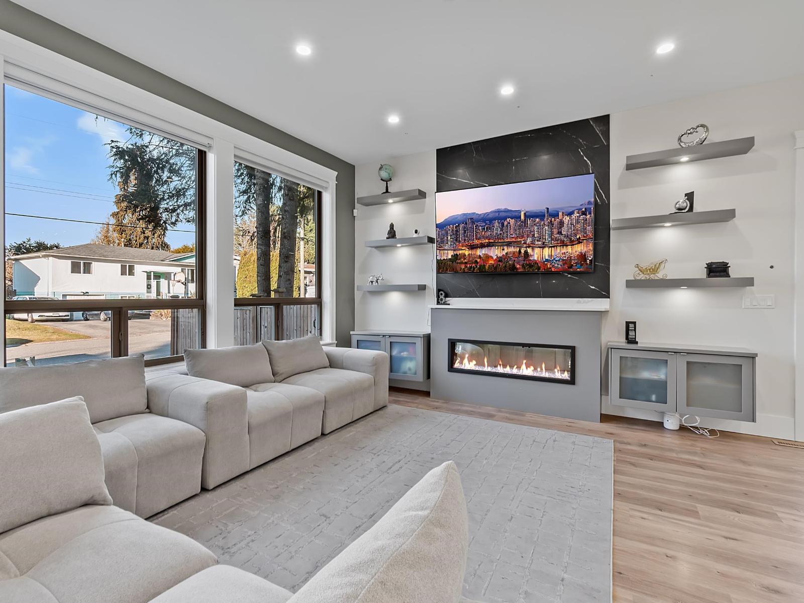 Welcome to this stunning luxury home in Scottsdale on an east facing corner lot. This 6 bedroom, 5 bathroom home is built with quality and offers an ideal floor plan for a modern family. The spacious great room opens to a beautiful contemporary kitchen featuring quartz countertops and stainless steel appliances. Upstairs offers 4 bedrooms, including a large primary bedroom with an ensuite featuring double vanity sinks and a walk in closet. The second bedroom has its own ensuite, while the other two bedrooms share a Jack and Jill bathroom. A bonus loft flex space upstairs can be used as a home office, playroom, or additional lounge. The basement includes a 2 bedroom legal suite, perfect as a mortgage helper. OPEN HOUSE MARCH 15 SUN (2-4PM). (id:52823)