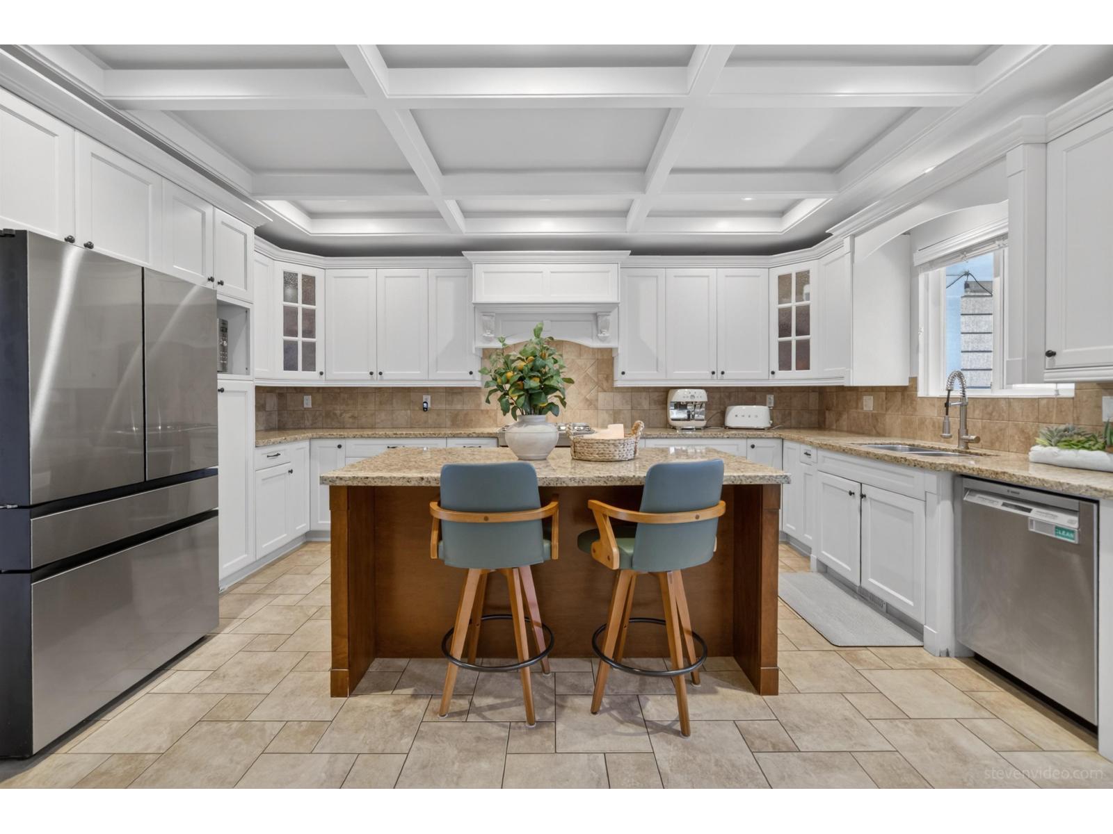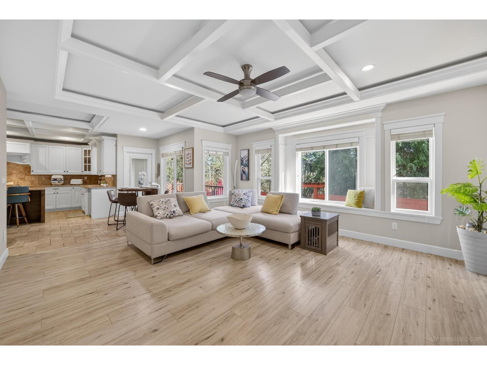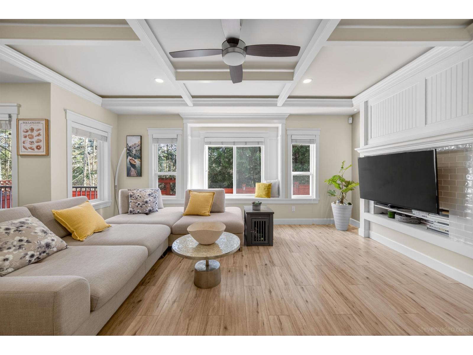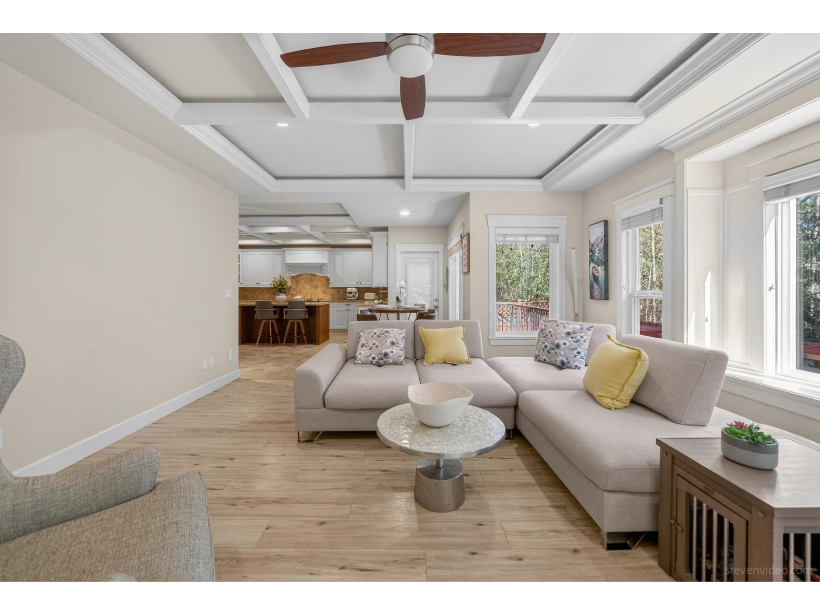 Stunning 6 bed, 4 bath family home backing onto private greenspace in a desirable family n with a bright LEGAL 2-bedroom mortgage helper suite. Features a spectacular open-concept layout with a grand living room boasting close 20 ft ceilings, high-end flooring, abundant natural light. Gourmet kitchen with granite countertops, large island & stainless-steel appliances-perfect for entertaining. offers 4 spacious bedrooms, 3 with walk-in closets, including a beautiful primary suite with vaulted ceilings, large walk-in closet & spa-inspired ensuite with soaker tub and oversized shower. The basement features a bright legal 2-bedroom suite, rec room for upstairs use, a fully equipped home gym. Enjoy a private backyard backing onto peaceful greenspace. Walking distance to Lynn Fripps Elementary. Updates: 2018 partial renovation, 2019 hot water tank, 2021 exterior painting, 2022 central A/C, 2024 basement living room flooring. Open House: Mar 21 & 22, 2-4 PM.Review offers if any at 5 pm Mar 24th. (id:52823)