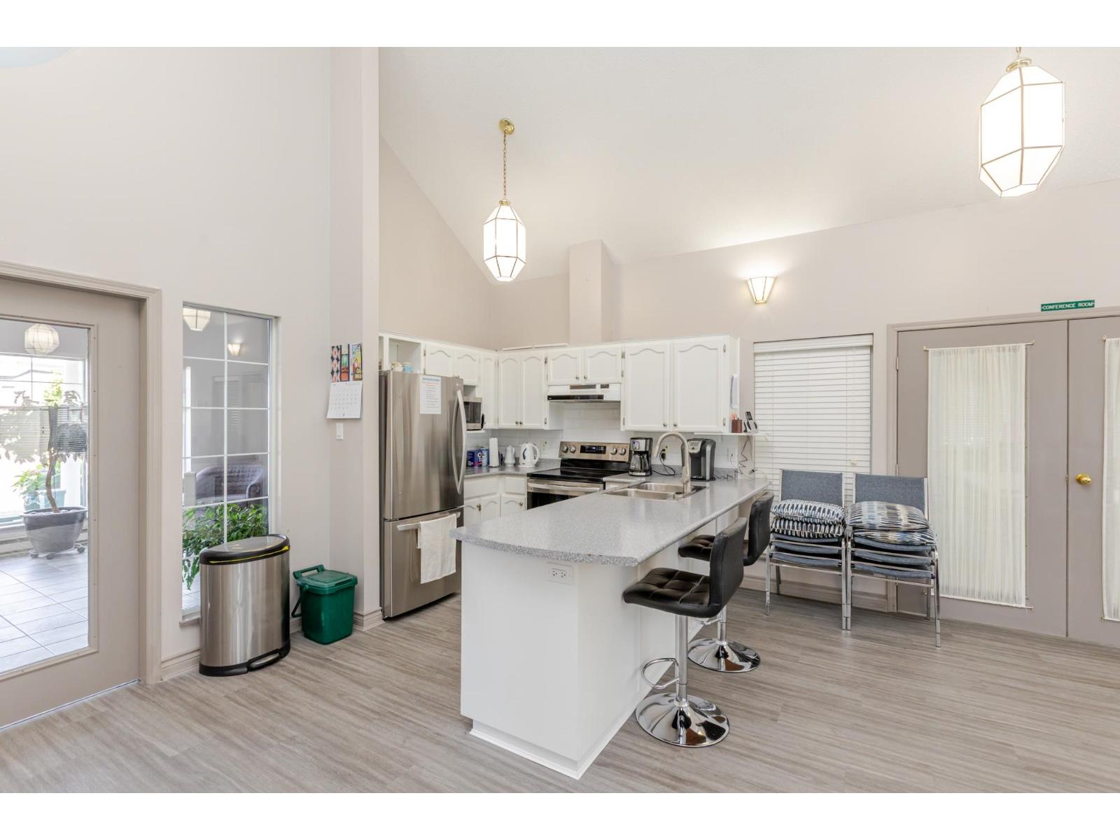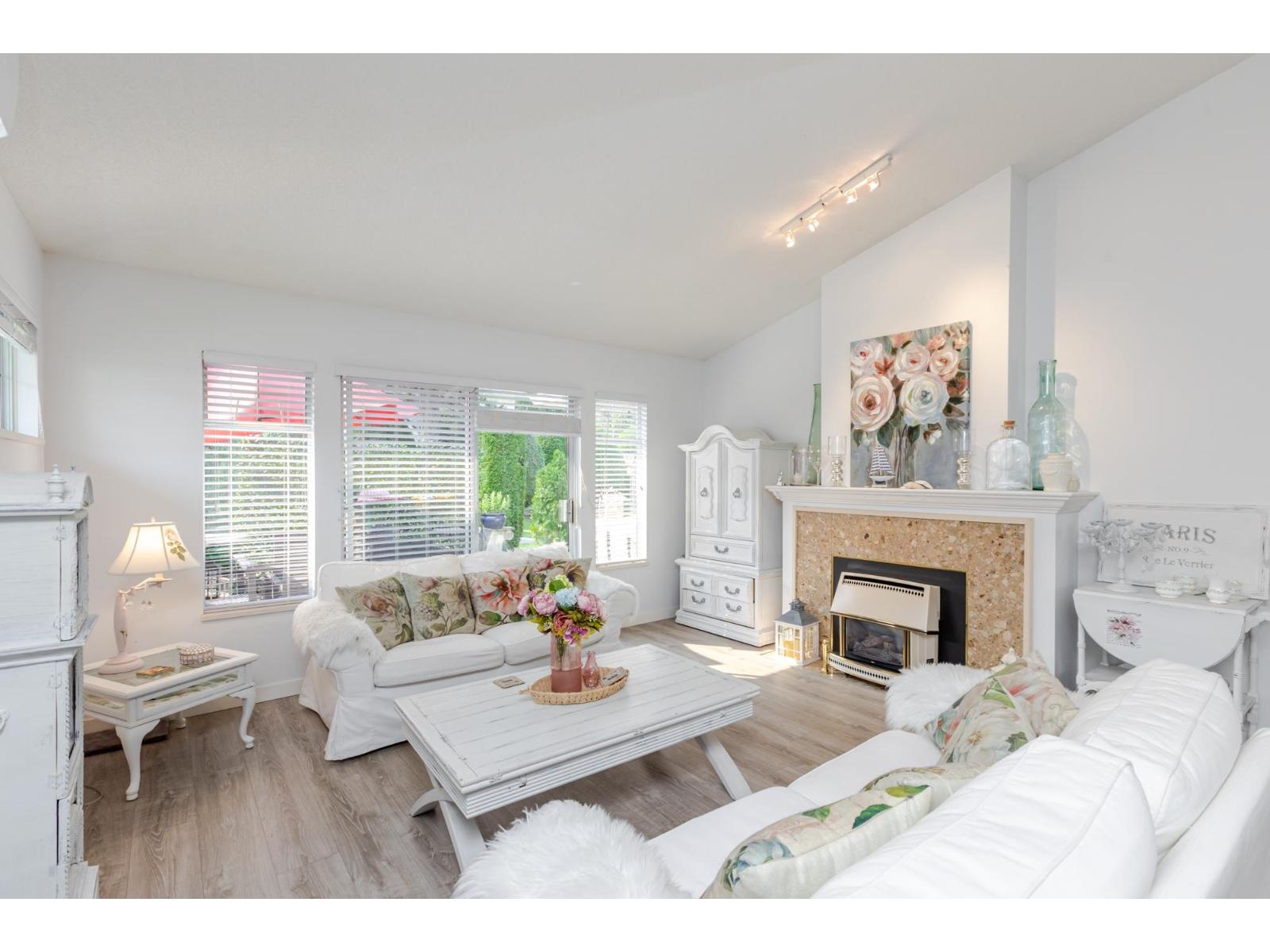 $619.14 MonthlyAttention downsizers! This beautifully updated END UNIT townhome offers 3 bedrooms, 2.5 bathrooms, & over 1,600sf. of bright, open living space - making it feel more like a detached home. Tastefully updated w/light laminate flooring, s/s appliances, quartz counters in the kitchen, mini split A/C, & newer washer/dryer. Other features include soaring vaulted ceilings & a cozy gas fireplace. Primary bedroom conveniently located on the main floor w/spacious ensuite + a updated powder room & a double side-by-side garage add everyday comfort. Large windows throughout flood the home w/natural light. Step outside to a generous southwest-facing patio that backs onto a serene greenbelt. Enjoy the complexes fantastic amenities including a clubhouse, putting green, hot tub, and outdoor pool. (id:52823)