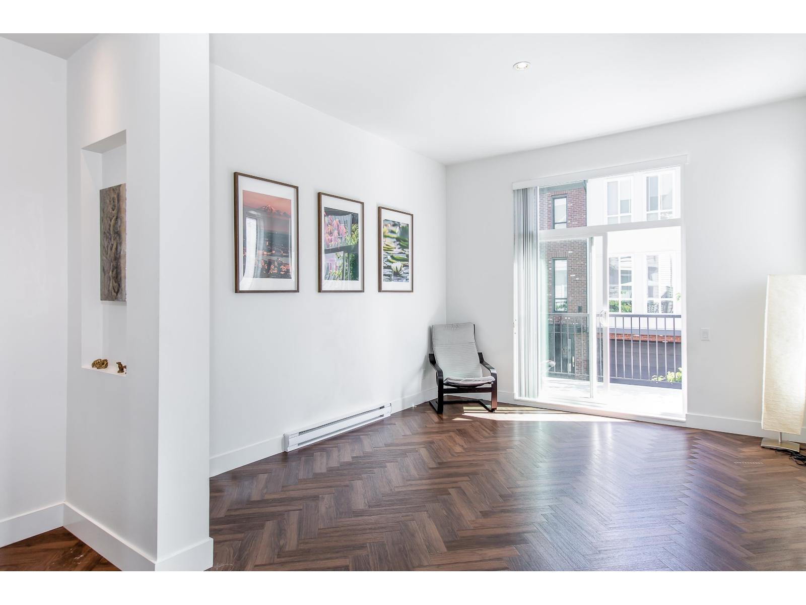$325 MonthlyRare bright 2 bedroom + den corner unit at KITCHNER by Mosaic remarkably designed and built. Step into elegance with 10ft ceilings, herringbone vinyl plank flooring, and large Georgian-style windows. The kitchen stuns with brass fixtures, quartz counters, and integrated dishwasher. Entertain effortlessly in the open layout, with a bonus space off the kitchen. The primary bedroom boasts dual closets & an upgraded ensuite with frameless shower. Conveniently located near schools, shops, and parks, this home offers both luxury and convenience. Experience refined living in this timeless white brick townhome at Kitchner! (id:52823)