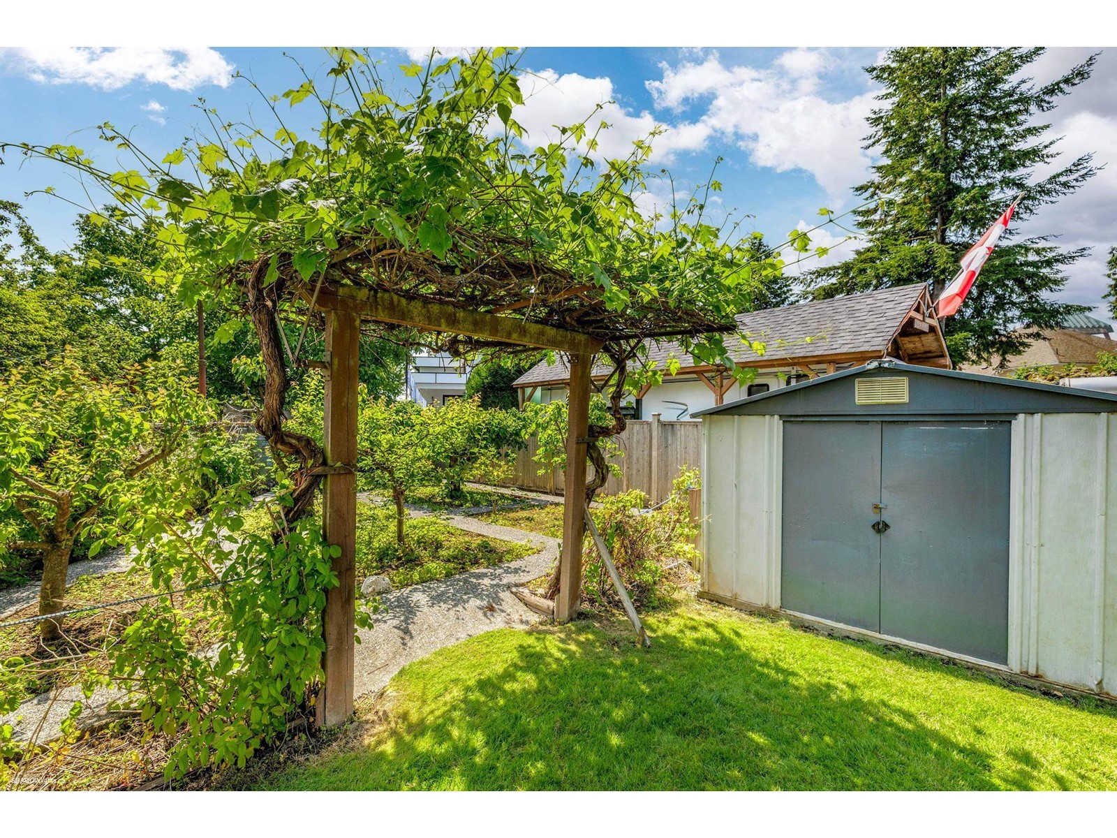 Investor alert! Solid 4 bedroom 2 bath family home in desirable Nordel location. Located on a quiet street on a nice lot with fruit trees including a mini orchard, irrigation system & storage shed. This home also offers great suite potential with a separate entrance & basement bathroom rough-in. Updates through the years include roof in 2013, Jacobs ladder to attic, 2 gas fireplaces, vinyl plank flooring, covered deck, high efficiency furnace, sub panel with 220 in the garage & EV ready! Perfect investment property at over 8000 sqft eastern exposed yard, covered deck, peek-a-boo view from main floor of the ocean & north shore ski mountains. Potential land assembly in the future, near Nordel Way & 116th street creating a great holding investment. Close to great schools, shopping & Transit! (id:52823)