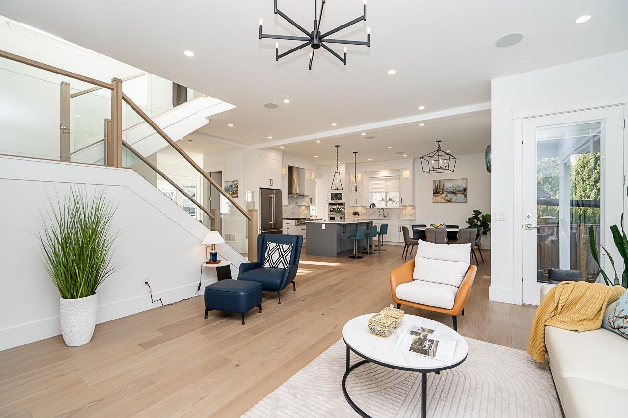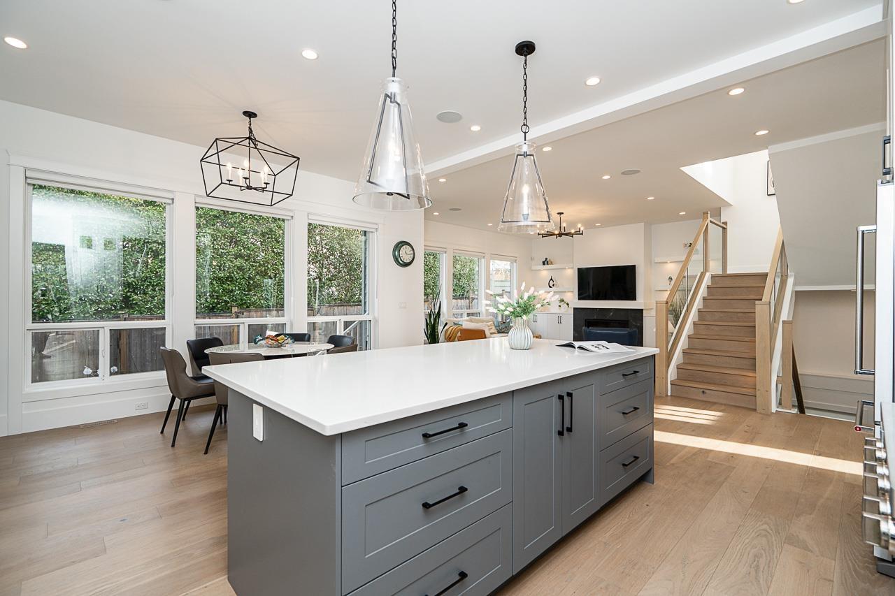 Situated on a family-friendly cul-de-sac in South Surrey, this home offers a peaceful living environment with a functional and flexible layout. Hardwood flooring on the main+upper levels adds warmth and durability, while the main floor features 10-foot ceilings, an open kitchen equipped with SS/S appliances, a quartz island, and a Butler's Bar that creates a natural connection to the living area. Upstairs includes 3 bright bedrooms with bay windows and vaulted ceilings, highlighted by a primary bedroom with a spa-like ensuite. A flexible upper-level space works well as a home office or reading area. The basement provides a legal one-bedroom suite, a den and ample storage, offering added flexibility for extended family. Conveniently located close to shopping/schools/parks/beach/trails. (id:52823)