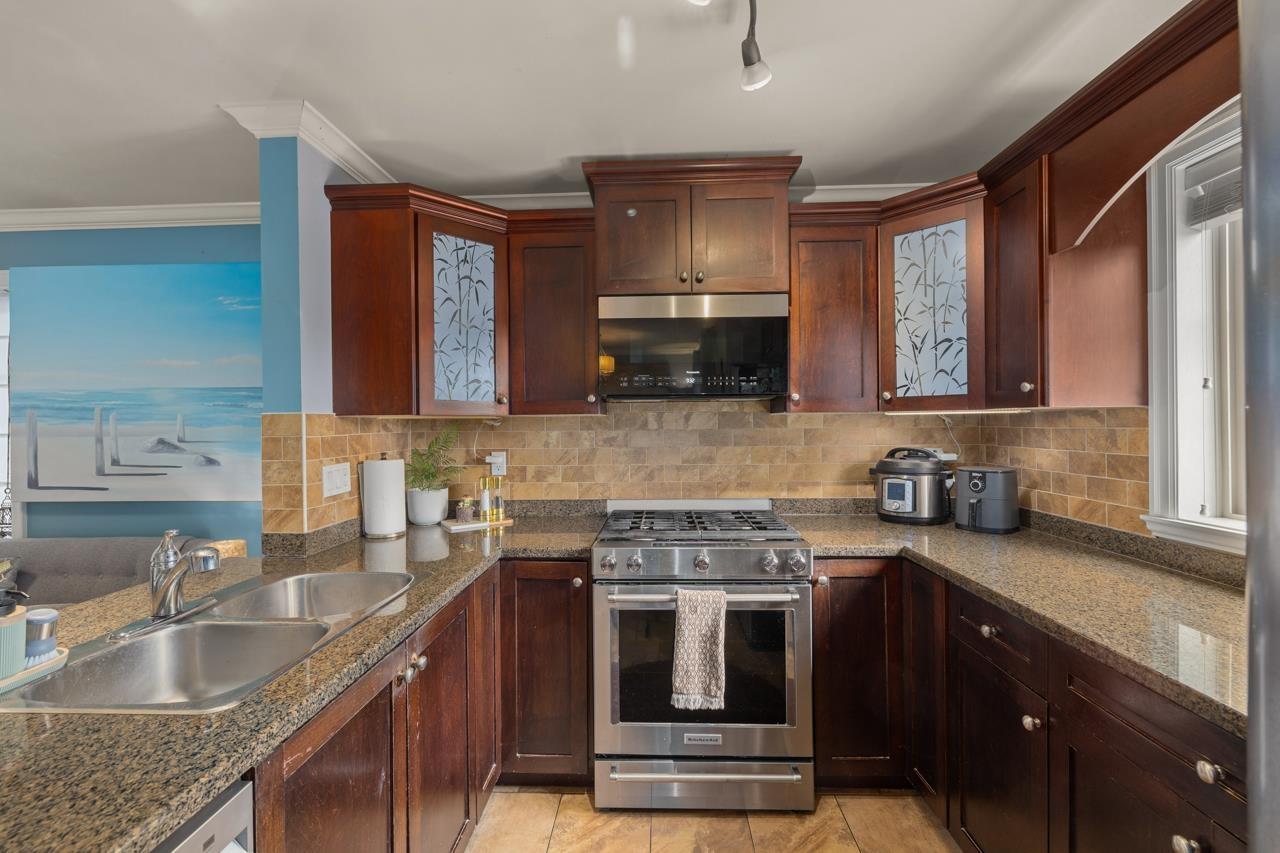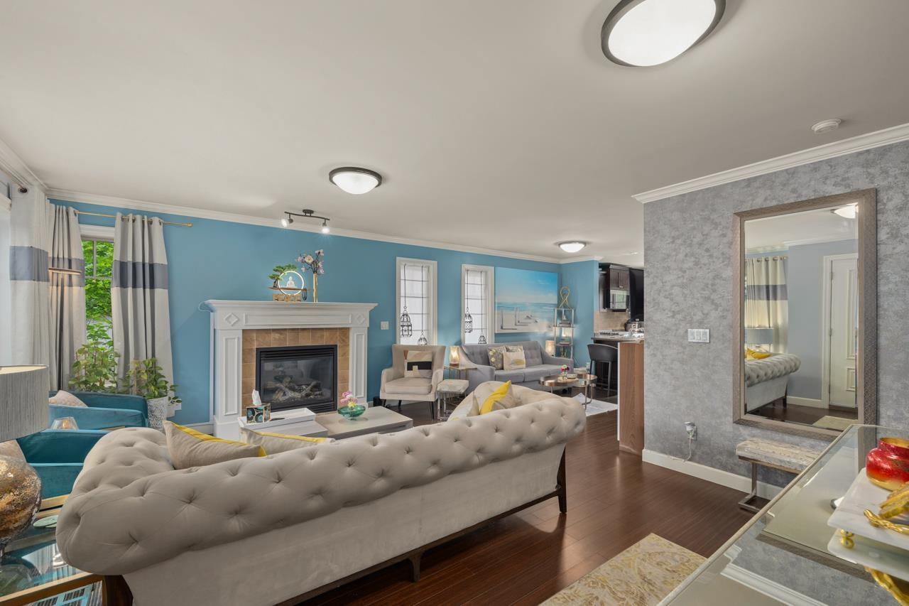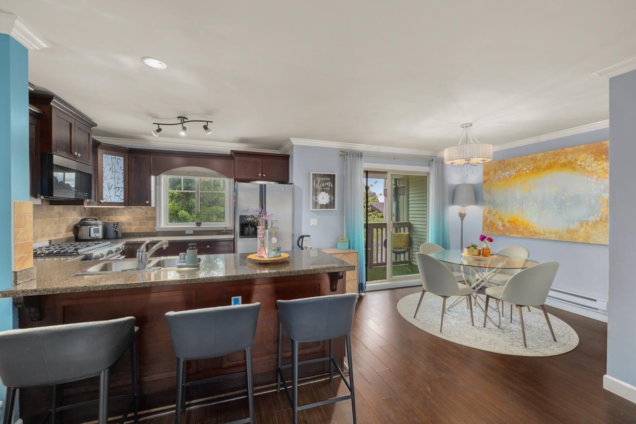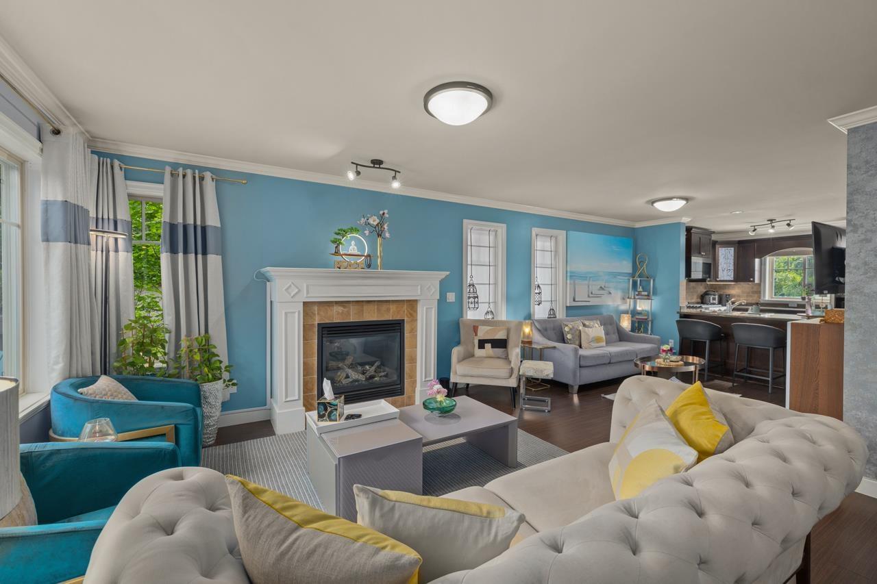 $570.86 MonthlyWelcome to this 4-bed, 3-bath end-unit townhome in the desirable Bakerview Terrace complex of Cloverdale. The home offers nearly 1,800 sq ft of beautifully designed living space, plus over 250 sq ft of outdoor space including a fenced patio and two balconies. The bright and airy main level features a large living and dining area with a cozy gas fireplace, and a chef-inspired kitchen with stainless steel appliances, a gas range, and an island perfect for entertaining. Upstairs, the primary suite boasts a walk-in closet, double vanity, soaker tub, walk-in shower, and a private balcony with mountain views. The lower level includes a versatile 4th bedroom or office, laundry, and access to a double side-by-side garage. Close to schools, parks, shopping, and transit-the perfect home for you. (id:52823)