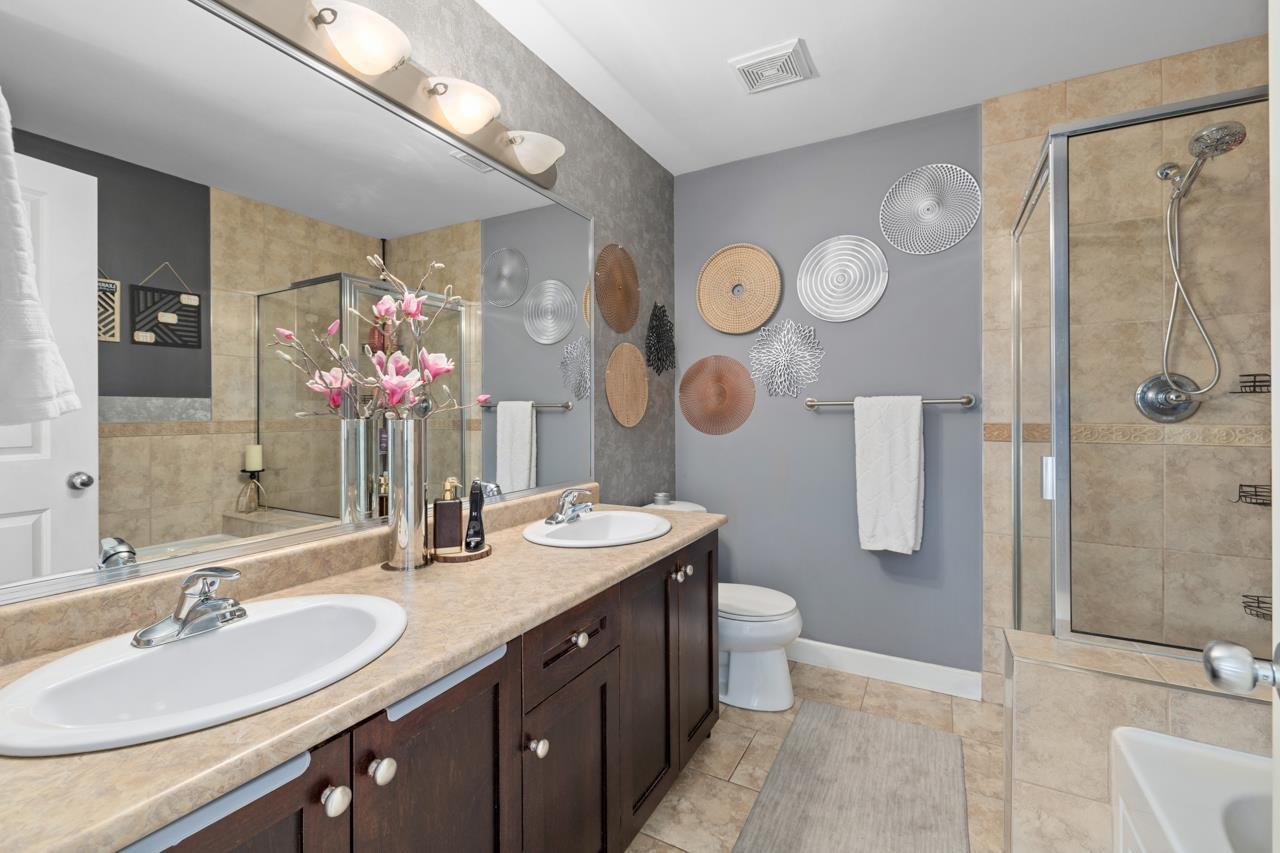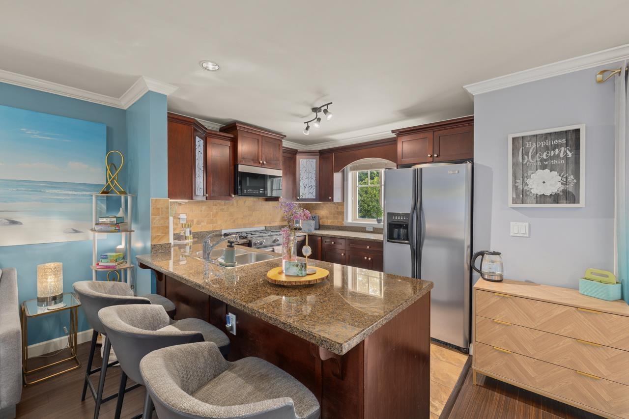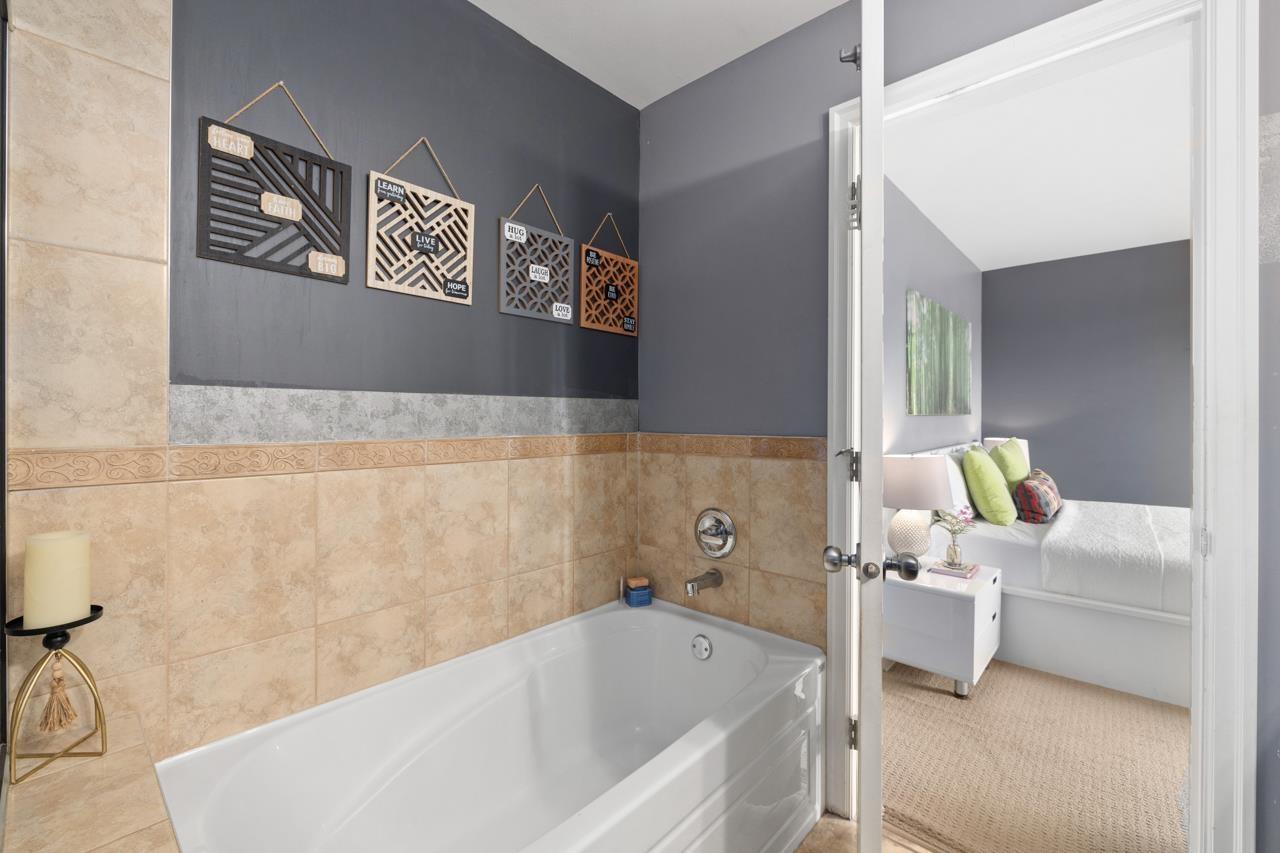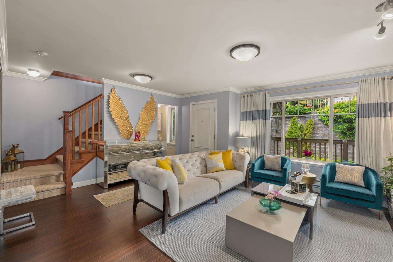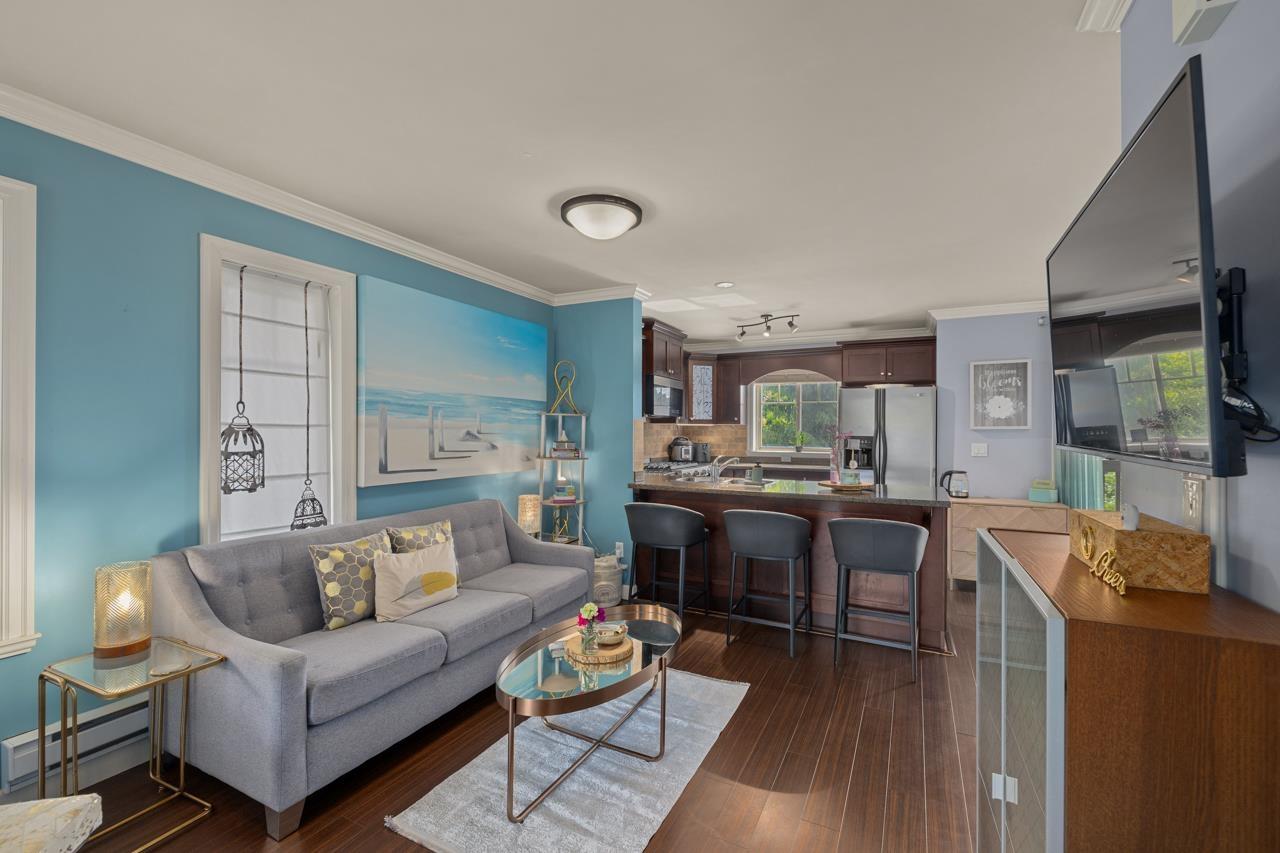 $570.86 MonthlyWelcome to this 4-bed, 3-bath end-unit townhome in the desirable Bakerview Terrace complex of Cloverdale. The home offers nearly 1,800 sq ft of beautifully designed living space, plus over 250 sq ft of outdoor space including a fenced patio and two balconies. The bright and airy main level features a large living and dining area with a cozy gas fireplace, and a chef-inspired kitchen with stainless steel appliances, a gas range, and an island perfect for entertaining. Upstairs, the primary suite boasts a walk-in closet, double vanity, soaker tub, walk-in shower, and a private balcony with mountain views. The lower level includes a versatile 4th bedroom or office, laundry, and access to a double side-by-side garage. Close to schools, parks, shopping, and transit-the perfect home for you. (id:52823)