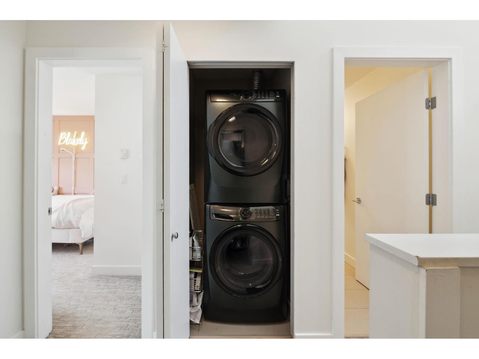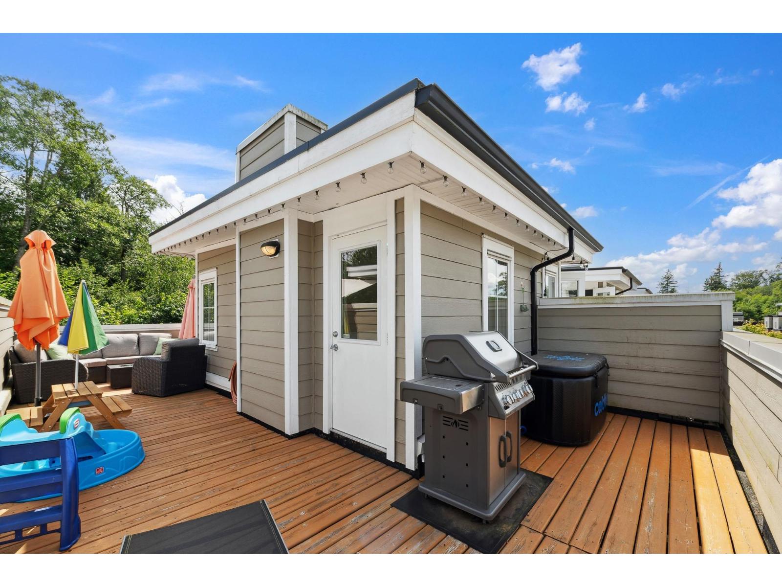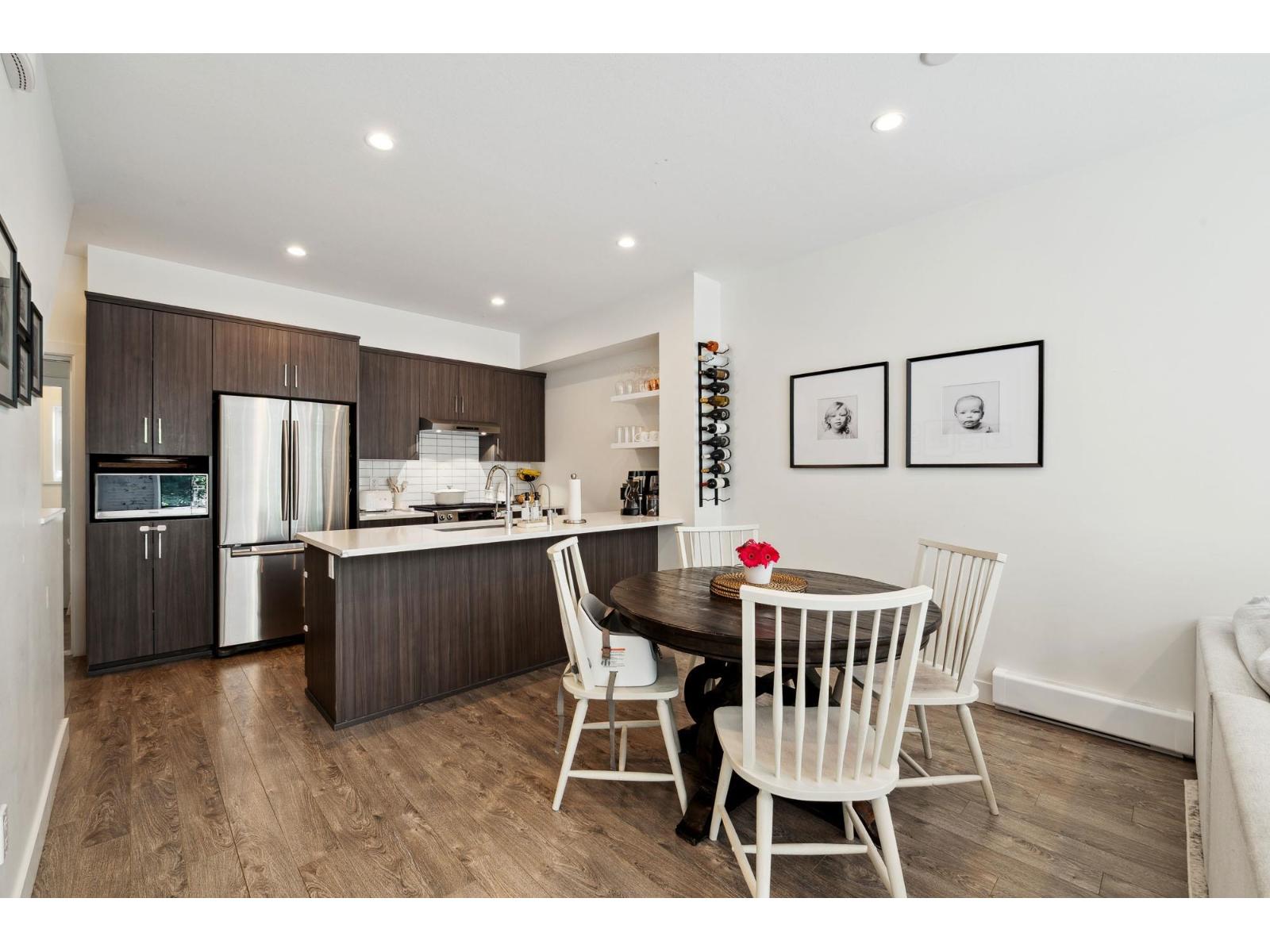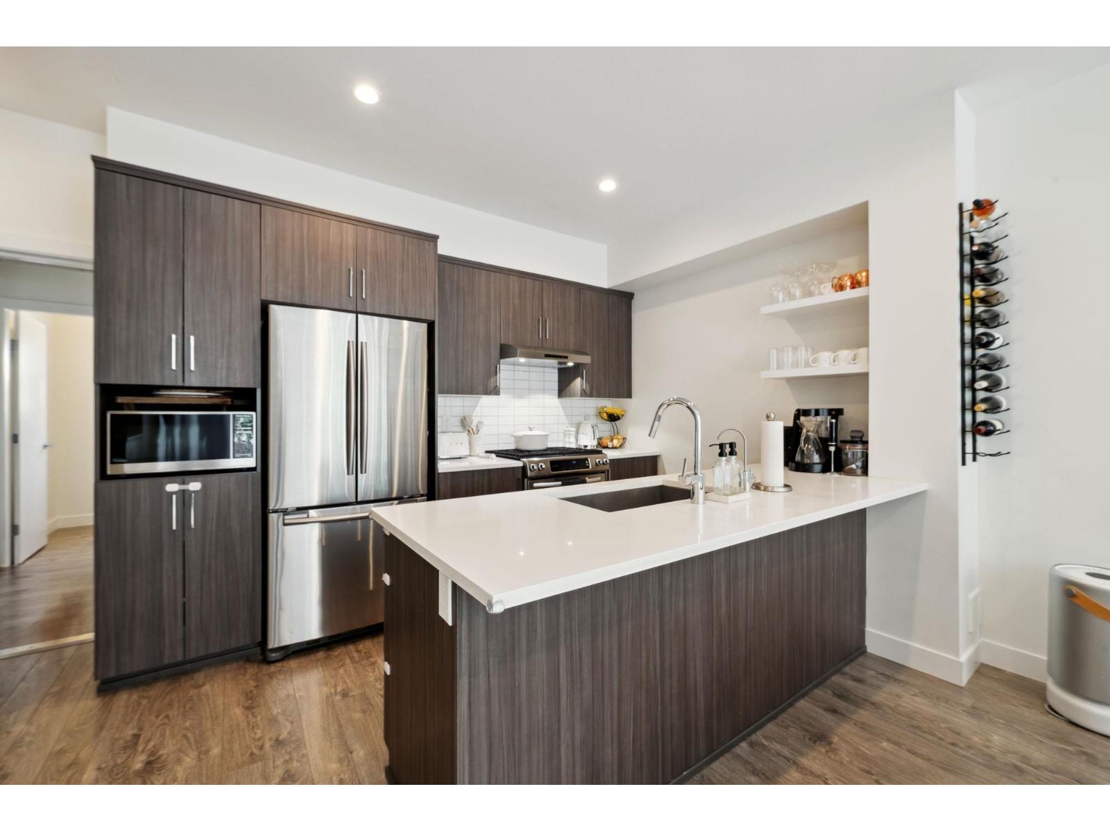 $361.08 MonthlyWelcome to The Woods, one of South Surrey's most sought after work/live communities. Surrounded by natural beauty, this 3 bed 3 bath 1561 sq ft home offers luxurious finishes & features in a private, tranquil setting. The main floor features 9' ceilings, an open concept kitchen/living with a gas range, stone counters, & chef's appliances, as well as a playroom & powder that can be converted into workspace or an office for your home business. Upstairs features 3 large beds w/ custom closets & 2 luxurious baths, & leads up to a stunning roof top deck w/ gas hook ups for a BBQ or firepit. This home also boasts a/c in all bedrooms & living spaces, & a massive extended tandem garage w/ a Tesla charger complete with a load manager & space for a gym. This is the one you have been waiting for. (id:52823)