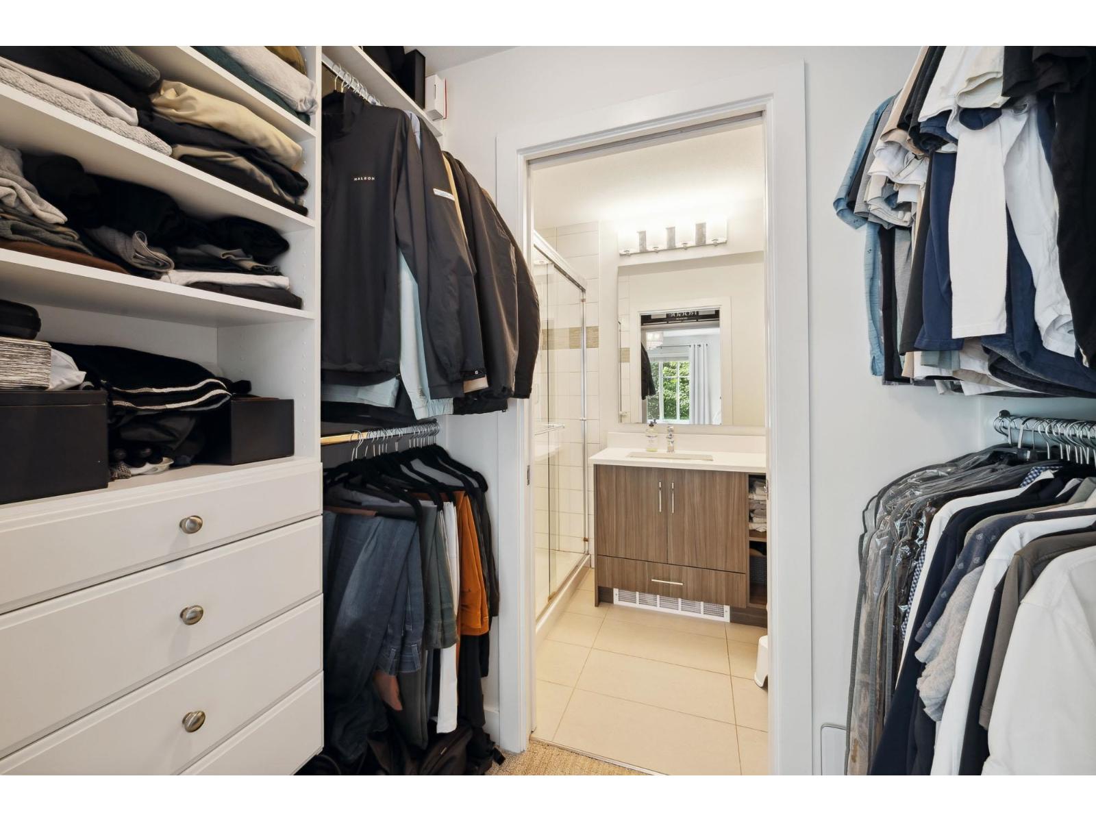 $361.08 MonthlyWelcome to The Woods, one of South Surrey's most sought after work/live communities. Surrounded by natural beauty, this 3 bed 3 bath 1561 sq ft home offers luxurious finishes & features in a private, tranquil setting. The main floor features 9' ceilings, an open concept kitchen/living with a gas range, stone counters, & chef's appliances, as well as a playroom & powder that can be converted into workspace or an office for your home business. Upstairs features 3 large beds w/ custom closets & 2 luxurious baths, & leads up to a stunning roof top deck w/ gas hook ups for a BBQ or firepit. This home also boasts a/c in all bedrooms & living spaces, & a massive extended tandem garage w/ a Tesla charger complete with a load manager & space for a gym. This is the one you have been waiting for. (id:52823)