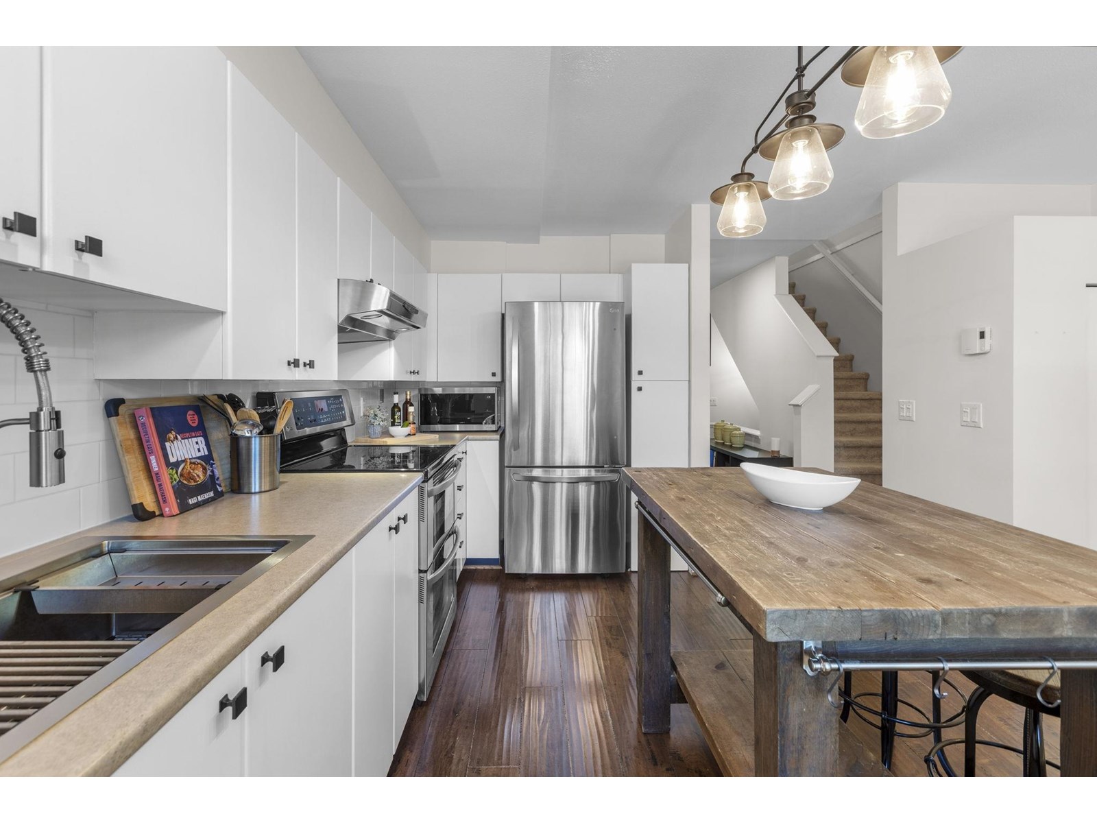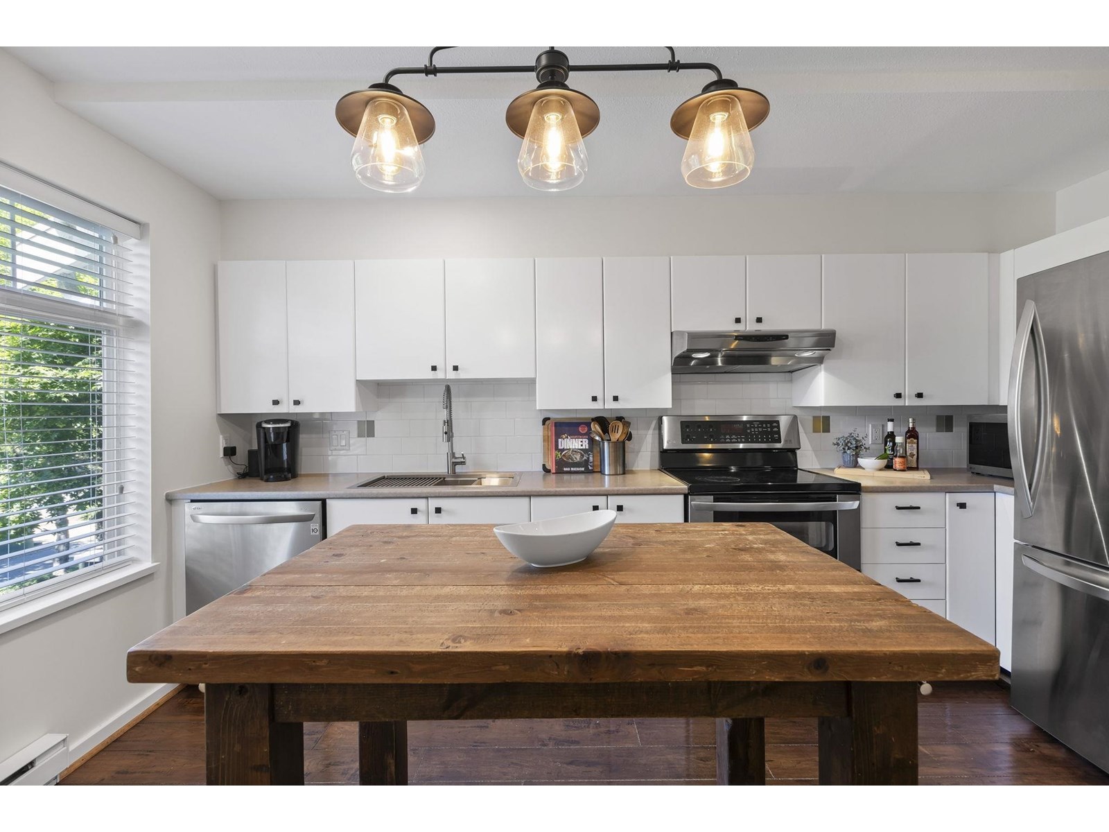 $403.25 MonthlyDiscover Sundance, a West Coast style enclave in coveted Morgan Creek. This updated 3-bed, 1-bath (rough-in for 2nd)townhome delivers 1,327 sq ft across three levels. The main floor's open kitchen, dining & living space, anchored by a stone electric fireplace, flows to a covered BBQ deck and sunny west-facing patio. Upstairs, two generous bedrooms share a cheater ensuite; downstairs, a 3rd bedroom is ideal for guests, office or gym. An oversize single garage plus driveway parks two cars. Residents enjoy the Sundance Club with fitness room, theatre and party lounge. Stroll to Rosemary Heights Elementary, transit and forested trails; shops, cafés and groceries at Morgan Crossing and Hwy 99 are minutes away. Pets and rentals welcome. Move in and live the South Surrey lifestyle! (id:52823)