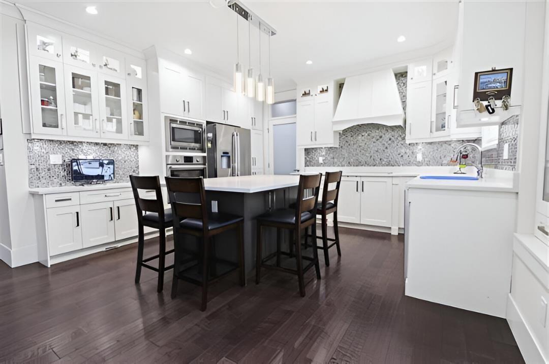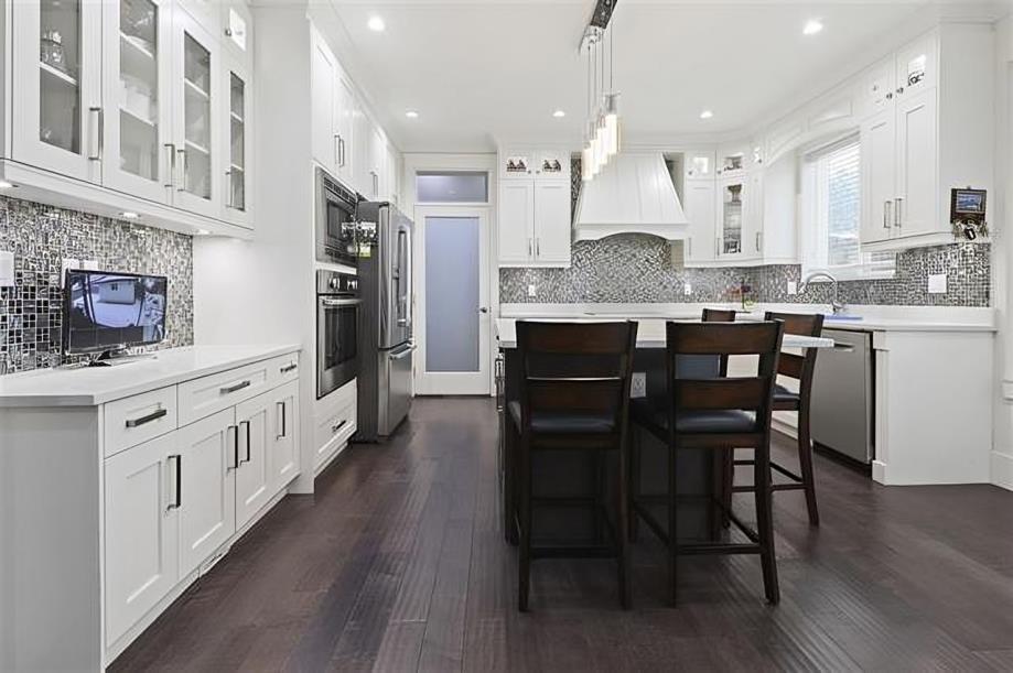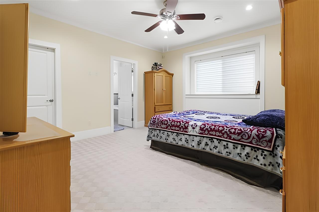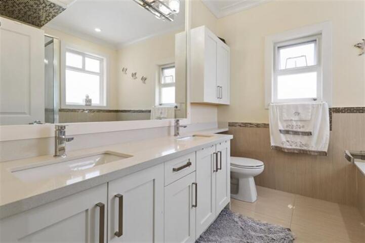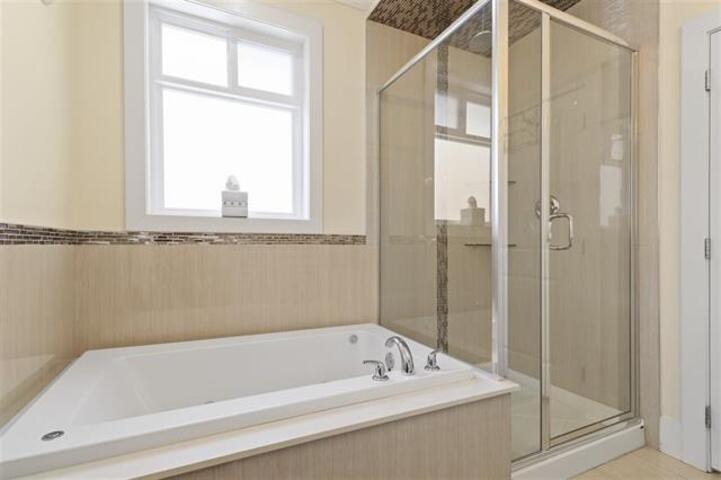 Luxury custom built home on big 6000 SQFT lot. This 3 level home has high end finishes and offers 8 bedrooms, 6 bathrooms. This home features a legal 2 bedroom in basement, dream kitchen and spice kitchen on main, top of the line appliances, granite countertops, large centre island prefect home for entertaining. Spacious living and dining room. Good size theatre room in the basement, no money spared. Home has radiant heat, AC and 2 master suites upstairs with 2 additional bedrooms. Fully insulated 240 SQFT shed in the back garden. Great location close to shop and transit. (id:52823)