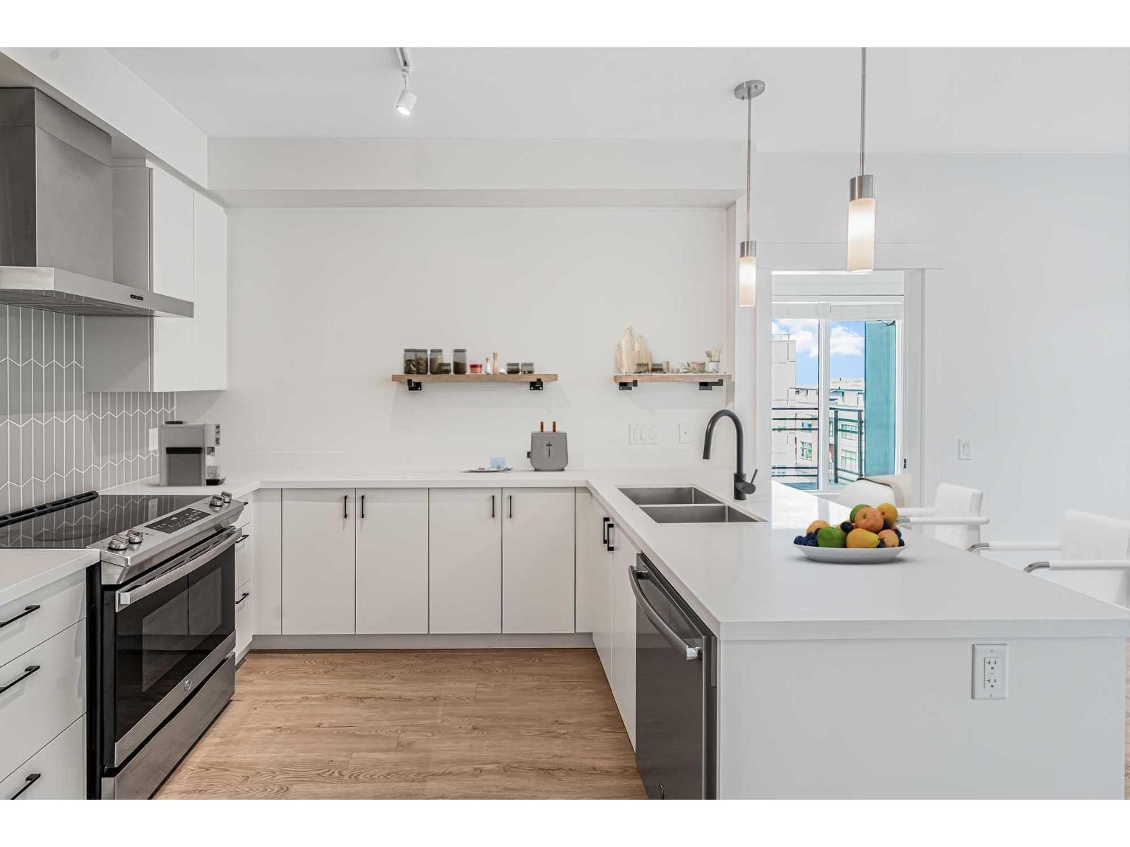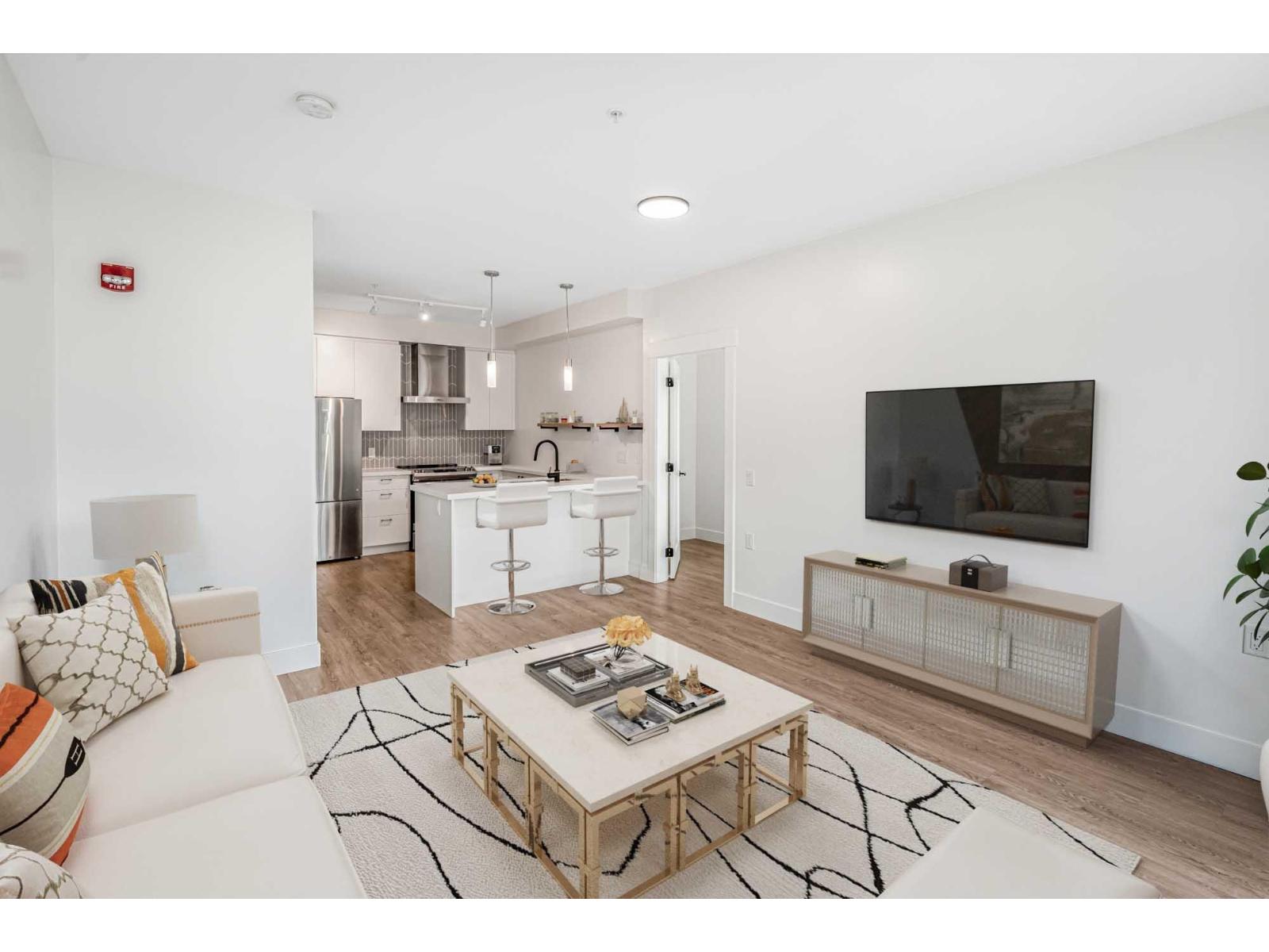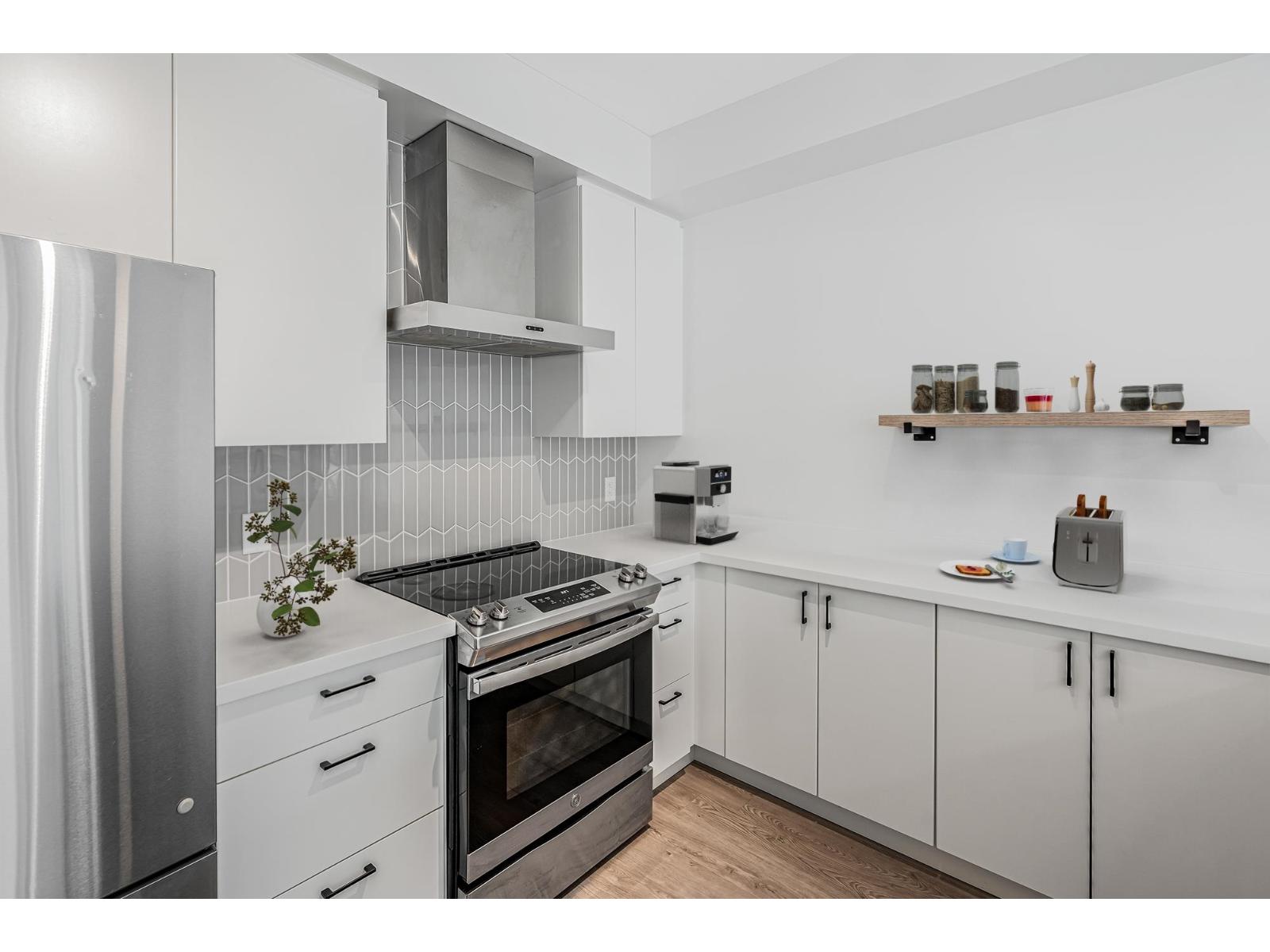 $382.06 MonthlyExperience elevated living at Hudson & Singer in the heart of Willoughby Heights. This corner residence offers 2 bedrooms and 2 bathrooms in a thoughtfully designed layout that separates the bedrooms for maximum privacy, enhanced by expansive windows that flood the home with natural light. The chef-inspired kitchen showcases quartz countertops, designer cabinetry, and premium stainless steel appliances. Two oversized decks invite you to take in the sweeping mountain views, creating the perfect extension of your living space. Recently refreshed with new paint, this home includes 2 secured parking stalls and a storage locker. Perfectly positioned just steps from Richard Bulpitt Elementary and the vibrant Willoughby Town Centre, this home blends luxury, lifestyle, and convenience. (id:52823)