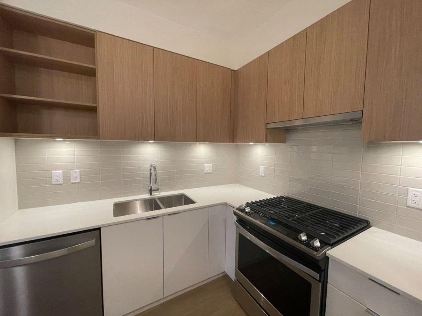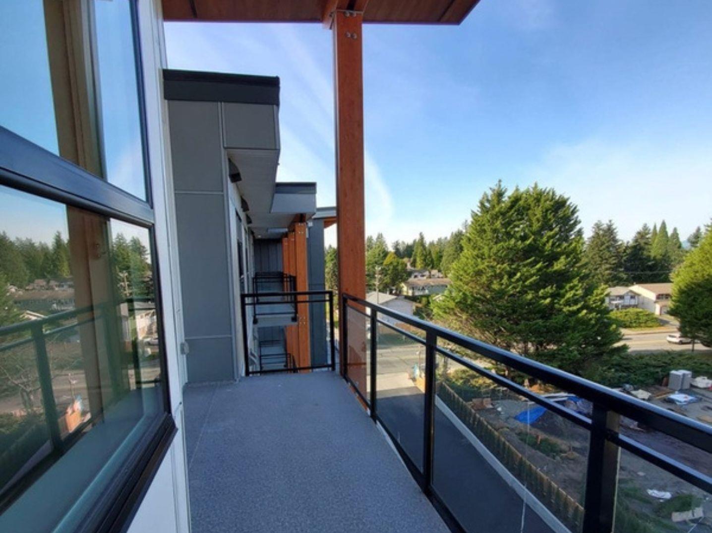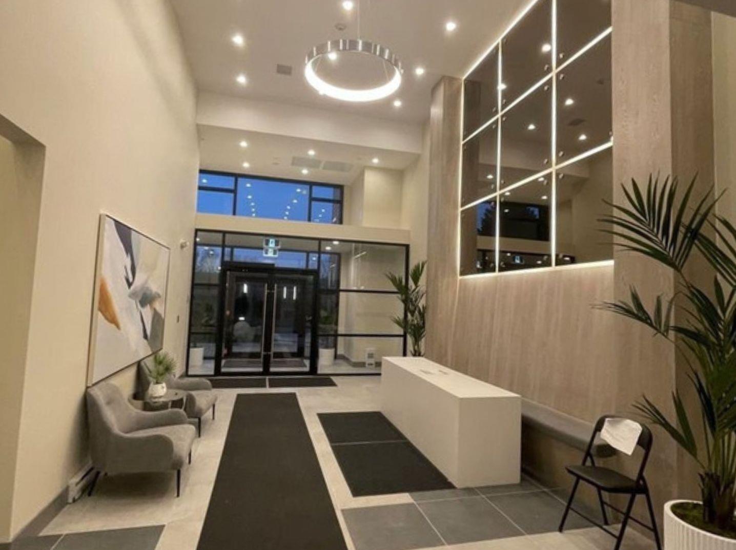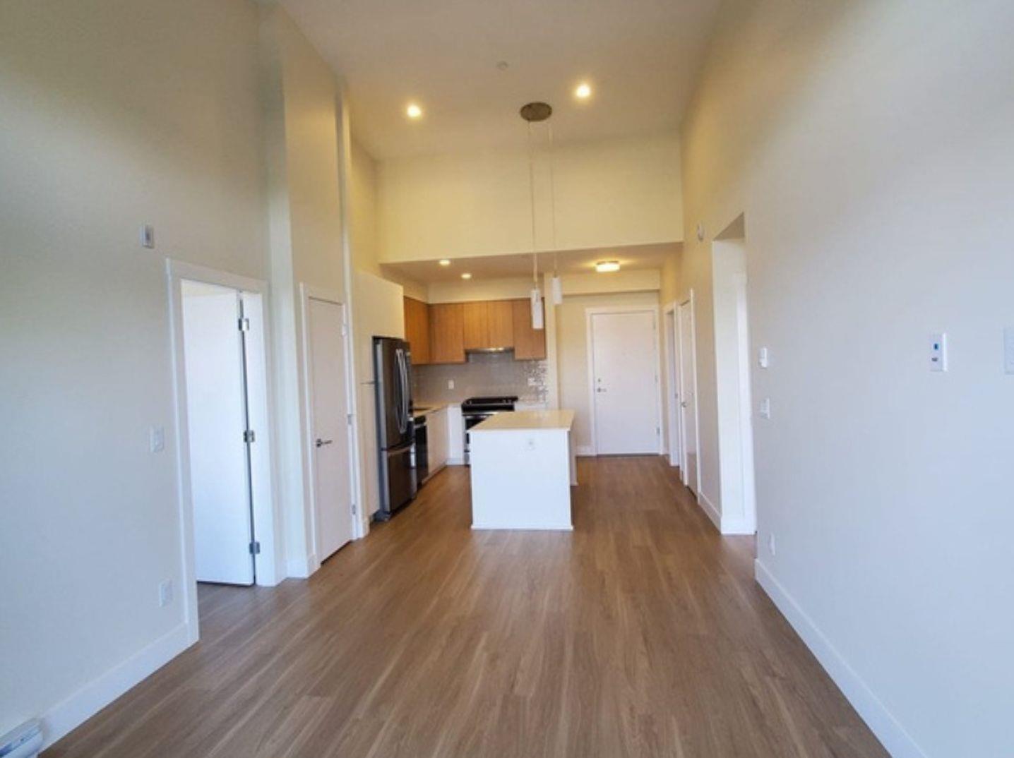 $412.12 MonthlyTop level Penthouse with Vaulted 11 Ft Ceilings & Panoramic Views. This rare 2 bed + den, 2 bath penthouse offers soaring vaulted 11 ft ceilings and floor-to-ceiling windows with unobstructed mountain and city views. The open-concept layout features a chef's kitchen with oversized island, bright living area, and private balcony-perfect for entertaining. The primary suite boasts a walk-in closet and spa-inspired ensuite, while the versatile den is ideal for a home office. Premium finishes include stainless steel appliances, sleek cabinetry, and modern design. Amenities: fitness center, lounge with kitchen, pool table, BBQ area, and secure parking. Rentals allowed. Ideally located at the Delta-Surrey border, steps to shops, dining, schools, trails, and transit. (id:52823)