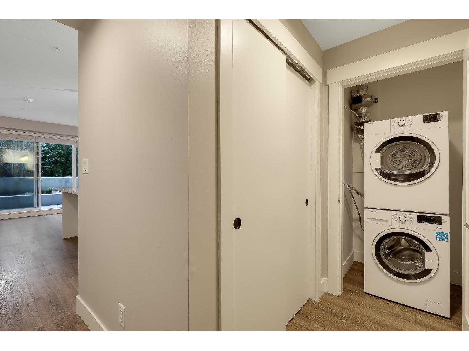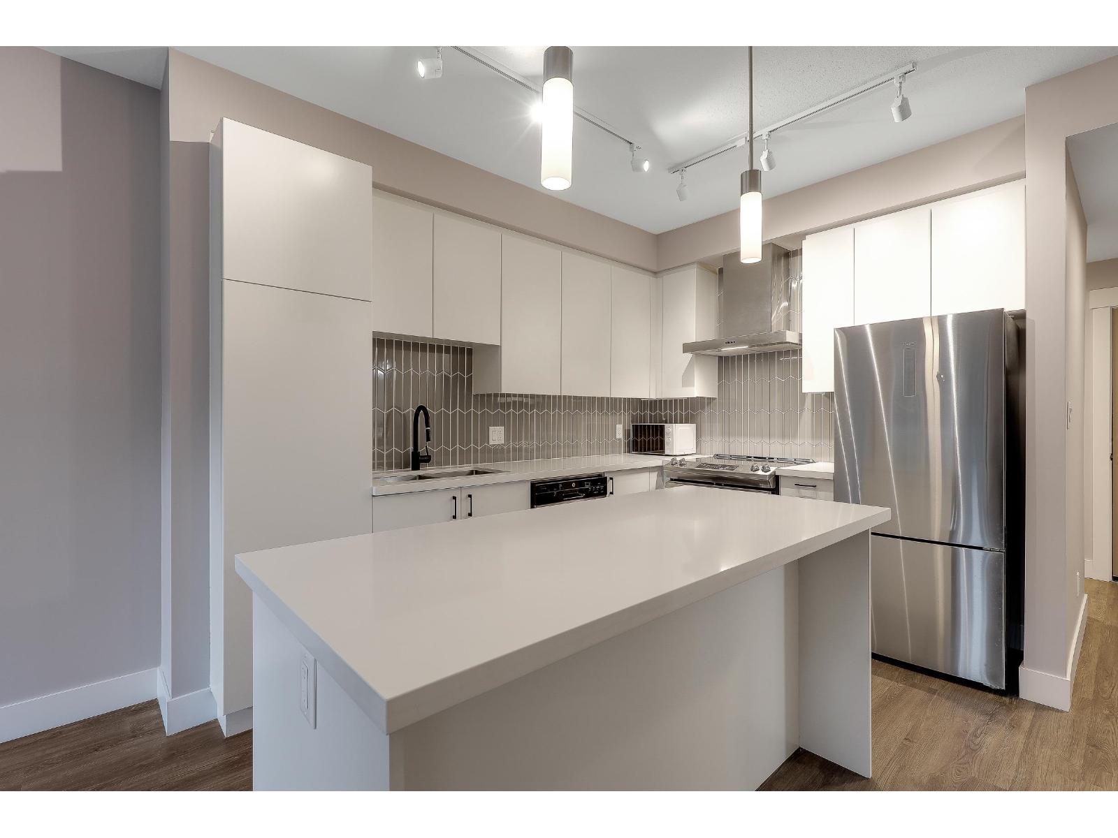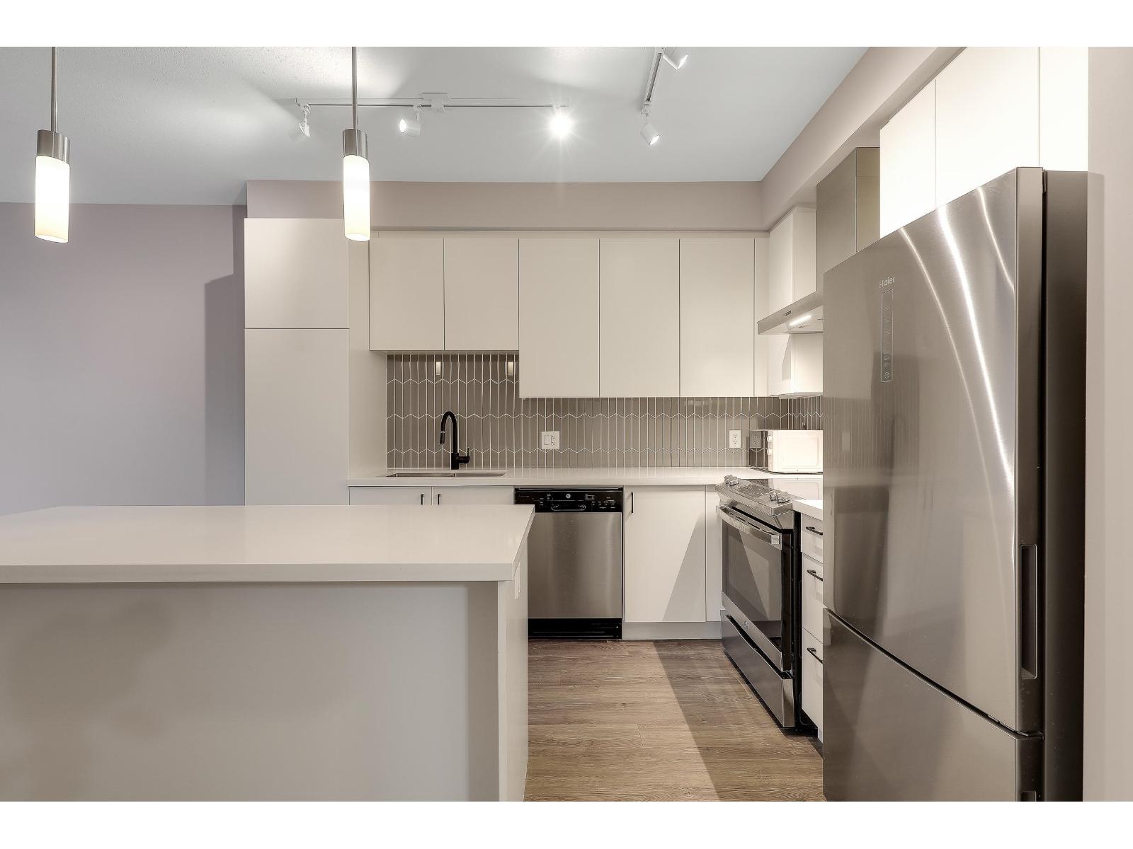 $276.49 MonthlyBest-priced unit in the building! This modern 1 bed, 1 bath condo is vacant and move-in ready, featuring an open-concept layout, contemporary kitchen with quartz countertops, large island, stainless steel appliances, and in-suite laundry. Bright living space opens to a spacious private patio, ideal for outdoor seating. Well-sized bedroom and modern bathroom with clean, neutral finishes throughout. Steps to Willoughby Town Centre with shops, cafés, restaurants, groceries, and services. Close to Yorkson Community Park, Langley Events Centre, schools, quick Hwy 1 access, and future transit expansion. Ideal for first-time buyers or investors. (id:52823)