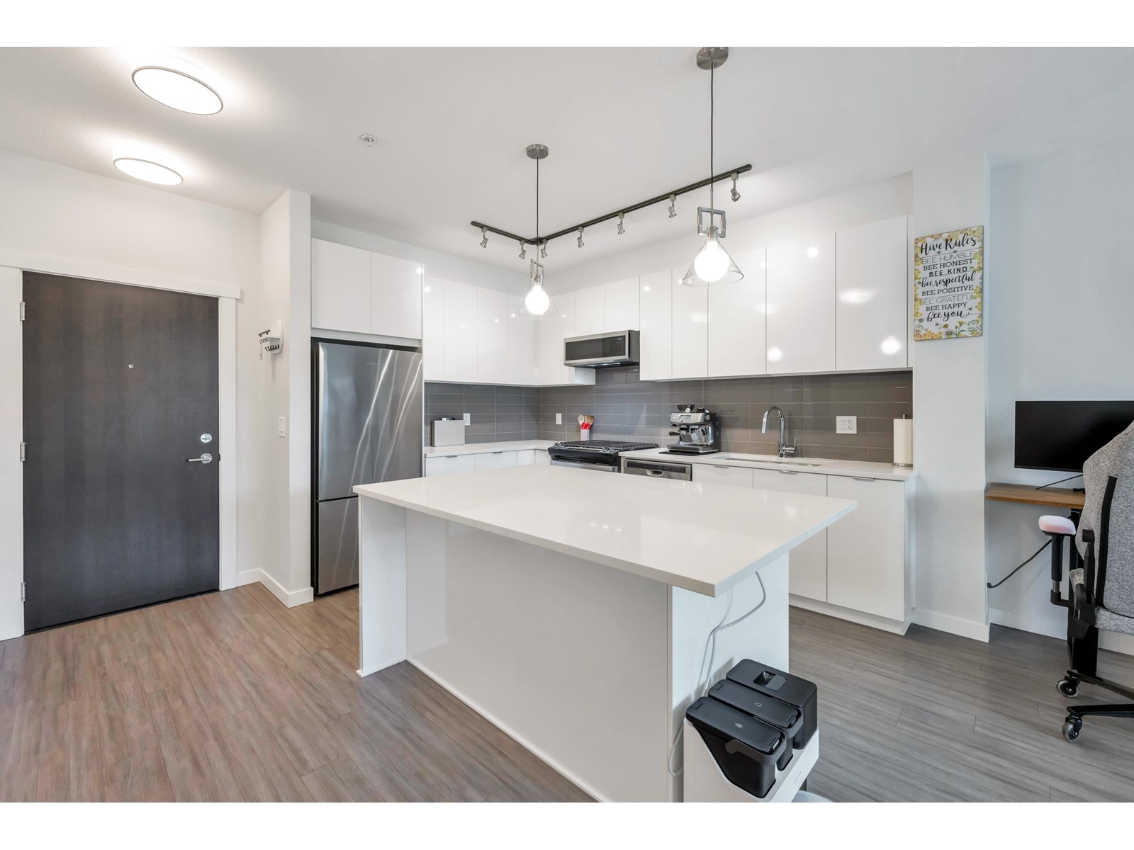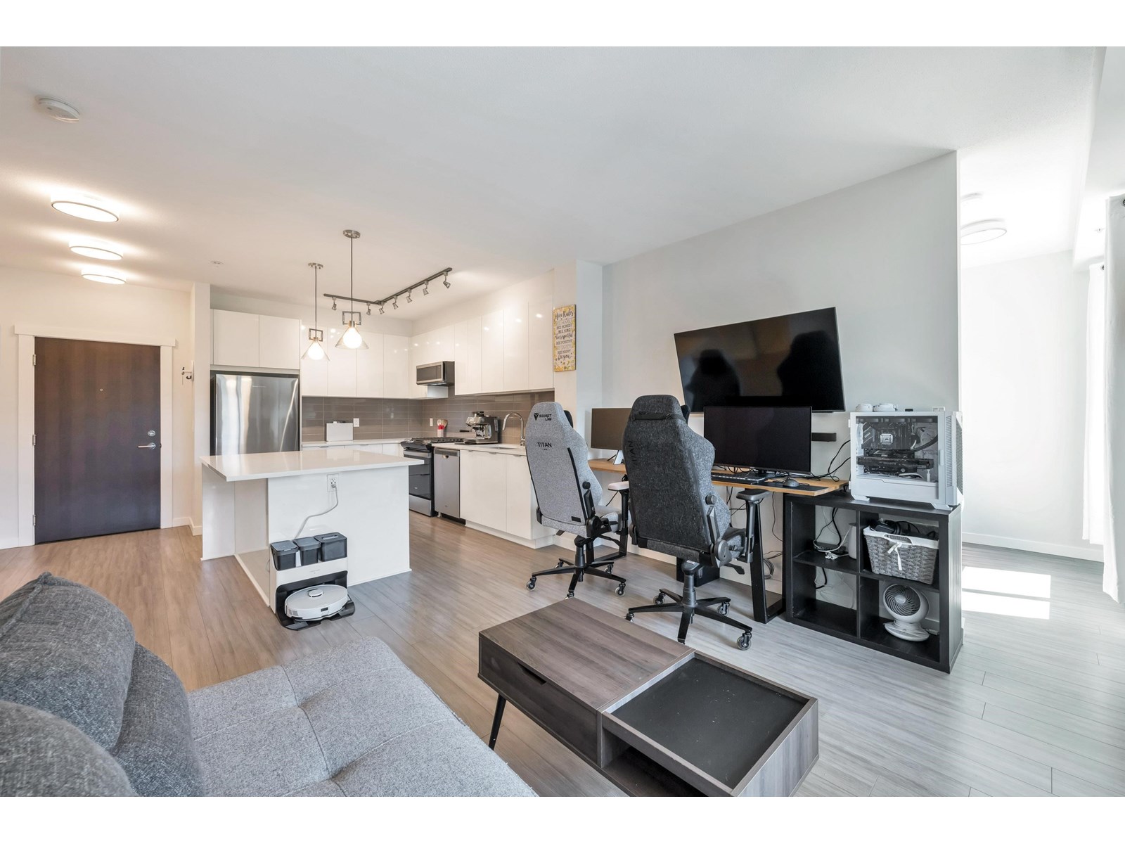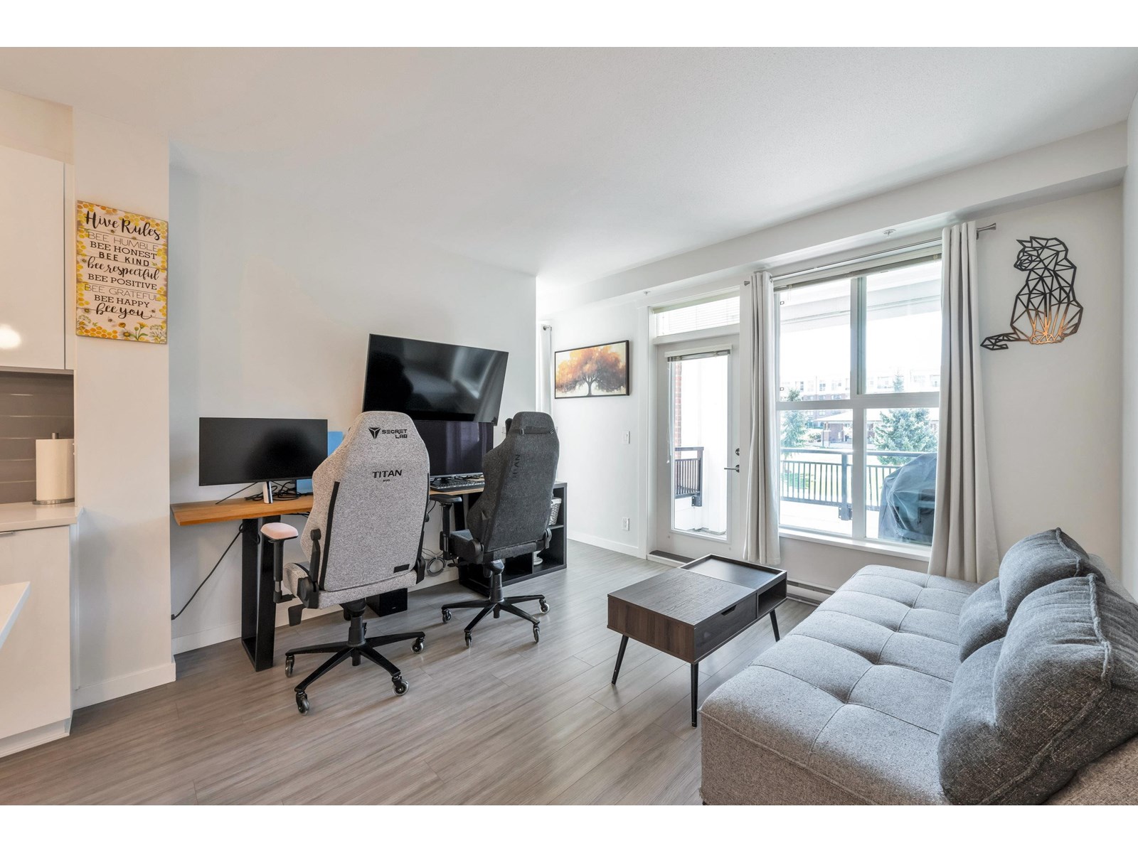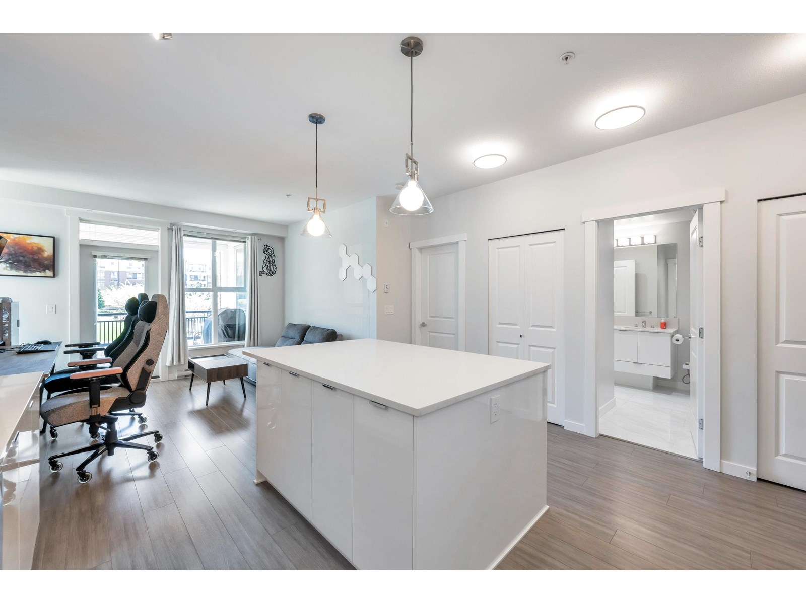 $409.79 MonthlyBRIGHT, MODERN, CLEAN AND METICULOUSLY MAINTAINED 1 BED+FLEX, 1 BATH condo in Building B at Carlyle, Union Park in Willoughby! This contemporary home, which was built in 2022, boasts a white kitchen with quartz counters and a gas range. The beautiful 5-piece bathroom has 2 sinks. Relax on your private covered patio overlooking the courtyard. NO NEIGHBOURS ON EITHER SIDE, and just STEPS to the elevator! The Level-2 EV charger-equipped parking stall is ideally located by the elevator. Pet-friendly (2 pets and no size restrictions). Enjoy over 85,000 sq ft of private outdoor amenities including an outdoor POOL, HOT TUB, and BBQ terrace, plus a 12,000 sq ft clubhouse with a FITNESS CENTRE, guest suites, DOG WASH station, and more. Transit, shopping and parks are within walking distance. A true gem! (id:52823)