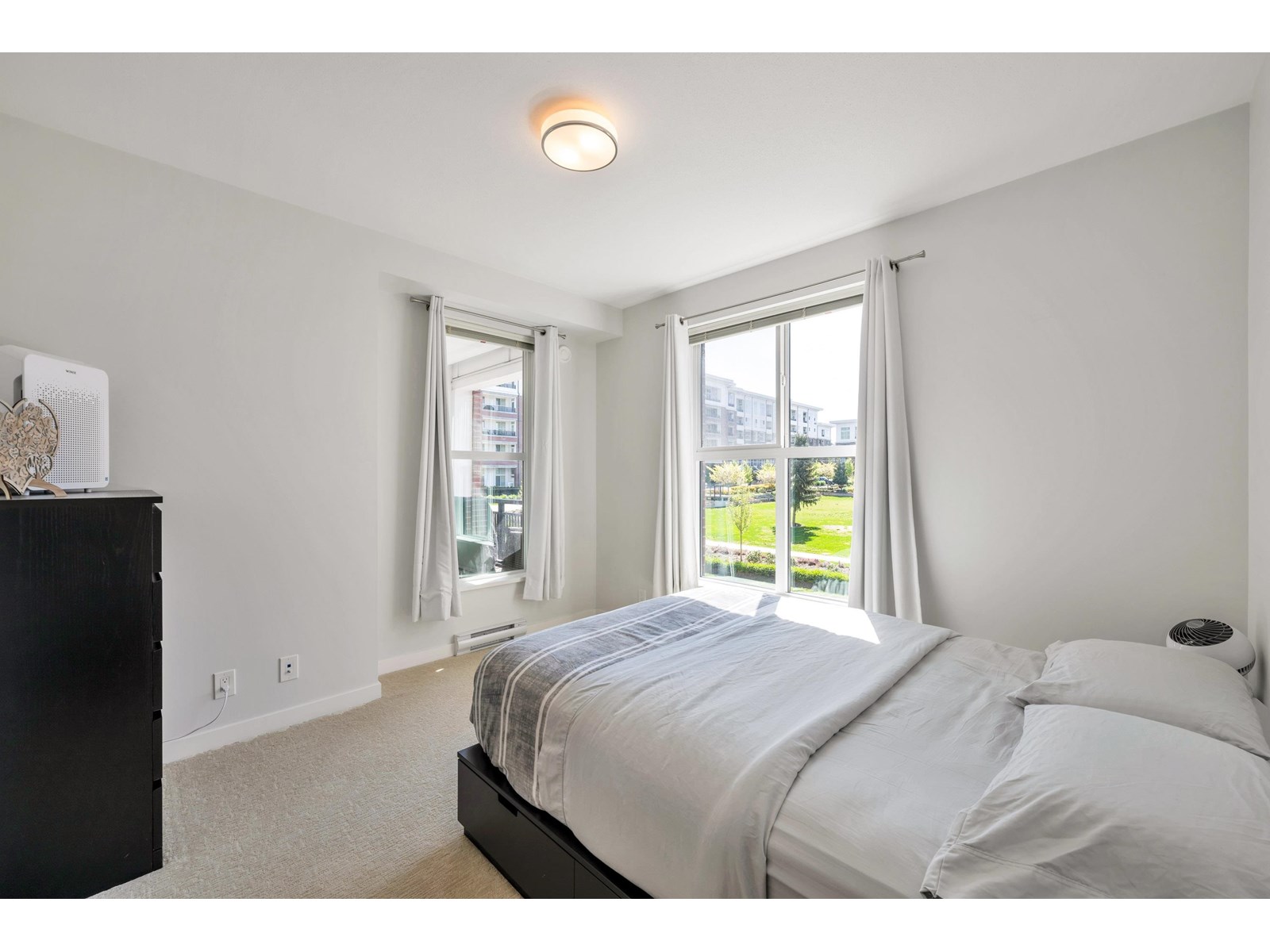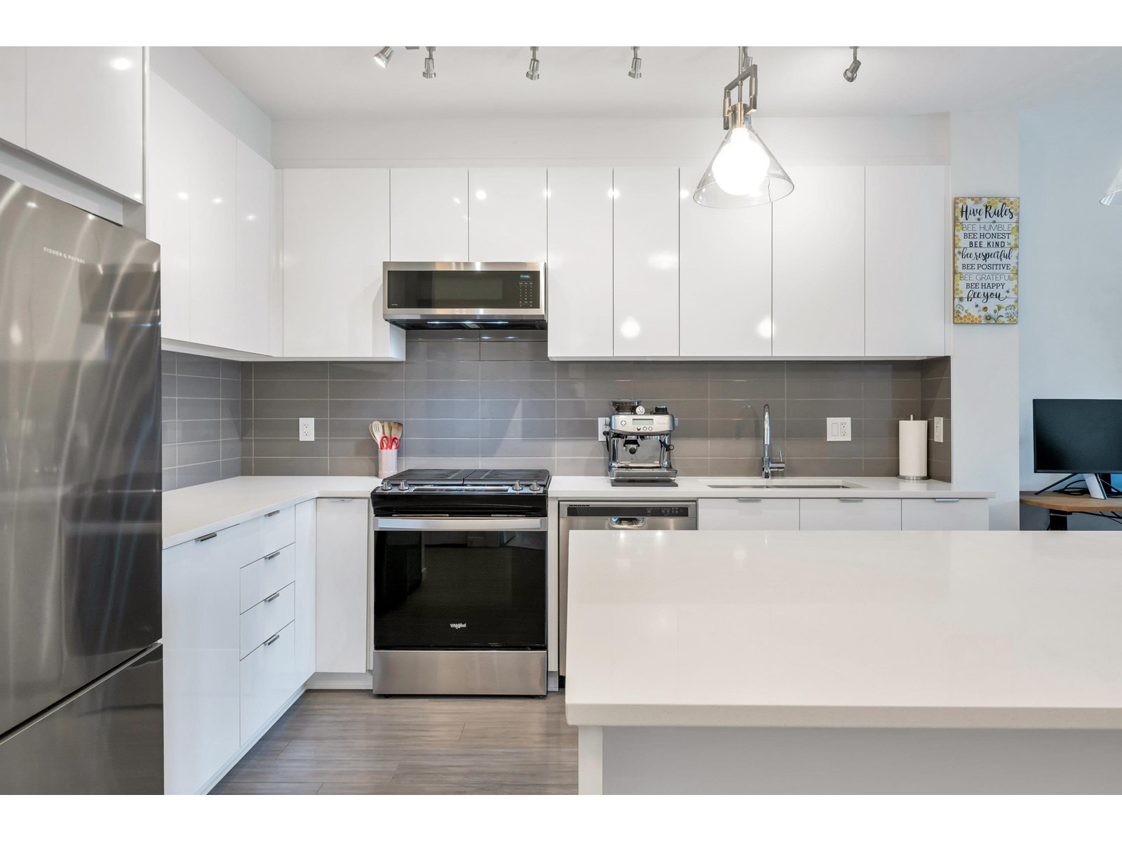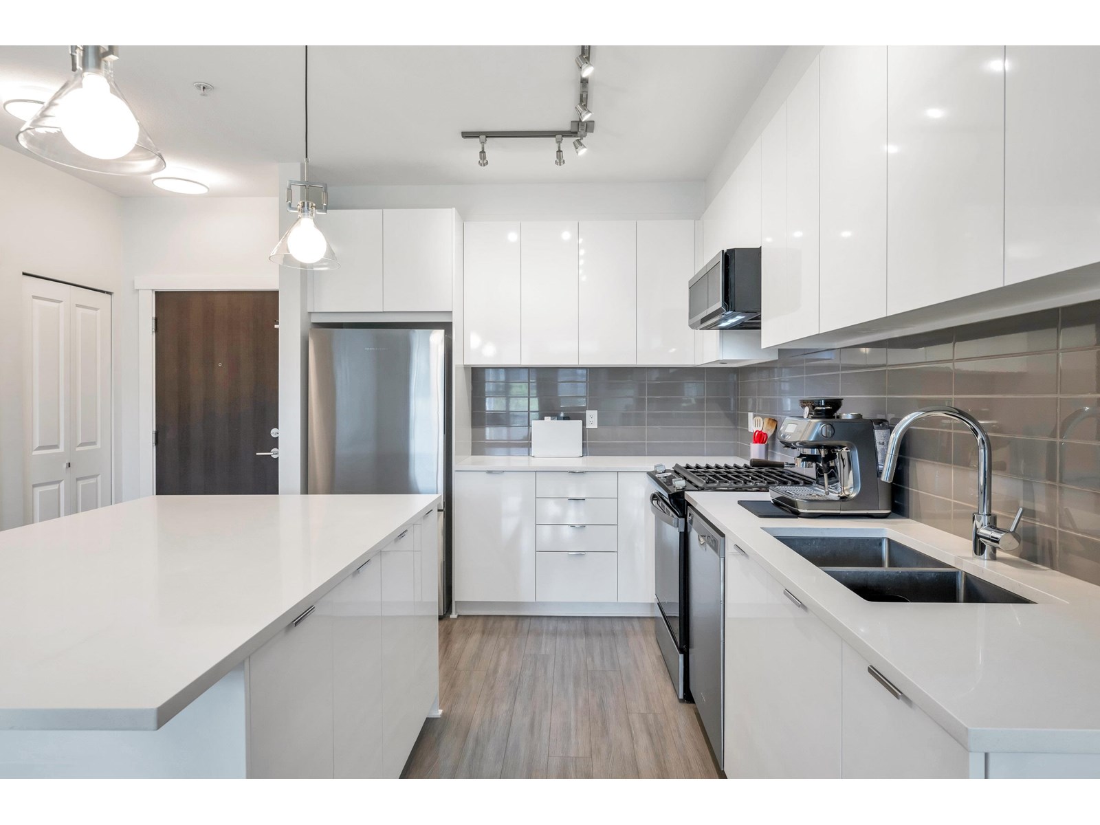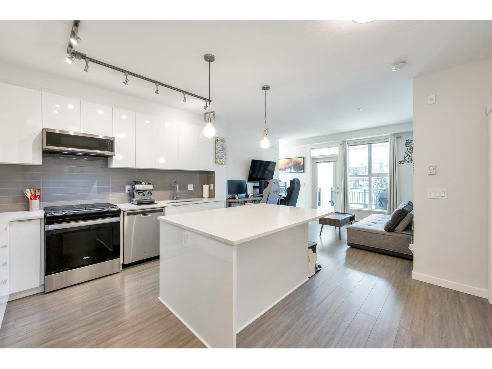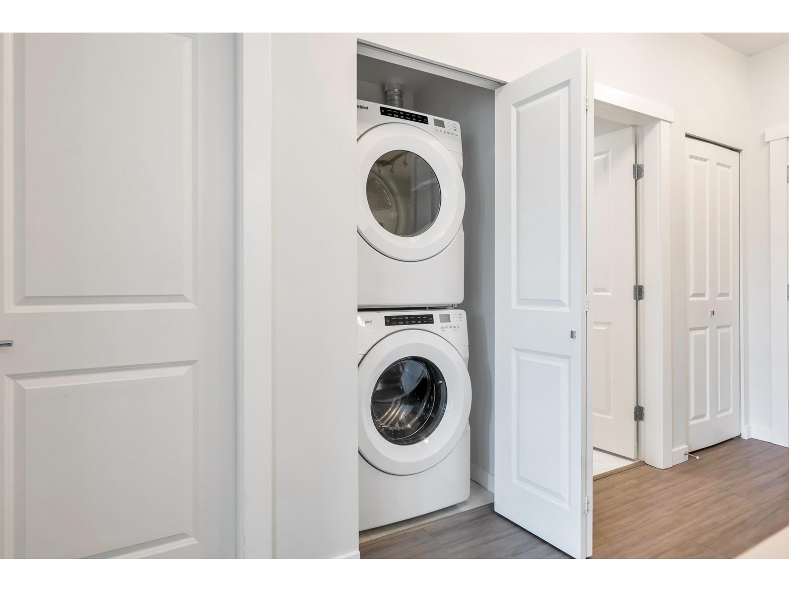 $409.79 MonthlyBRIGHT, MODERN, CLEAN AND METICULOUSLY MAINTAINED 1 BED+FLEX, 1 BATH condo in Building B at Carlyle, Union Park in Willoughby! This contemporary home, which was built in 2022, boasts a white kitchen with quartz counters and a gas range. The beautiful 5-piece bathroom has 2 sinks. Relax on your private covered patio overlooking the courtyard. NO NEIGHBOURS ON EITHER SIDE, and just STEPS to the elevator! The Level-2 EV charger-equipped parking stall is ideally located by the elevator. Pet-friendly (2 pets and no size restrictions). Enjoy over 85,000 sq ft of private outdoor amenities including an outdoor POOL, HOT TUB, and BBQ terrace, plus a 12,000 sq ft clubhouse with a FITNESS CENTRE, guest suites, DOG WASH station, and more. Transit, shopping and parks are within walking distance. A true gem! (id:52823)