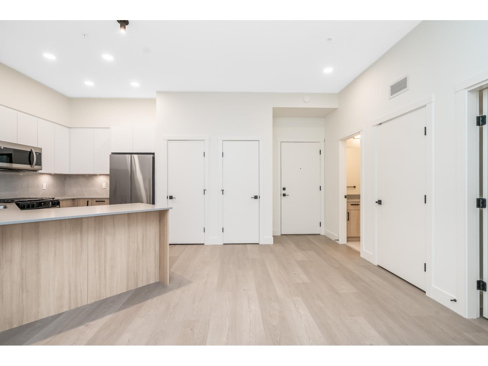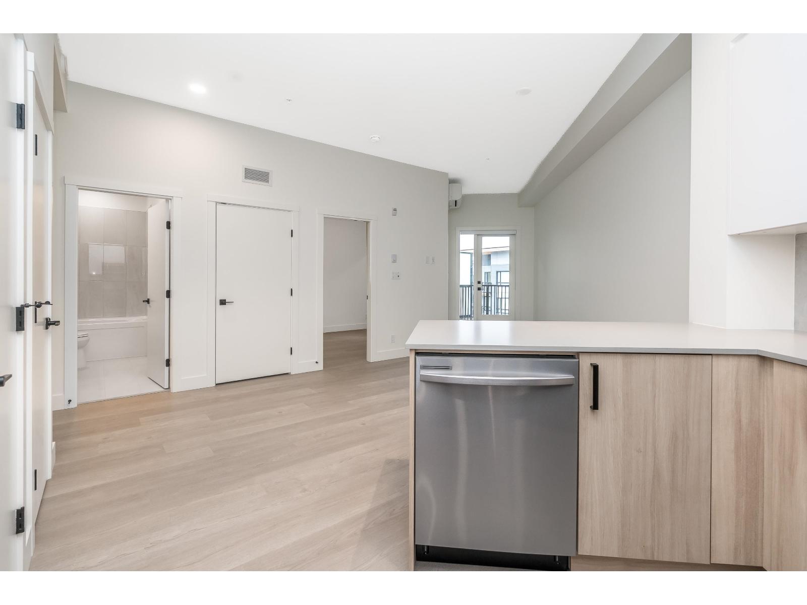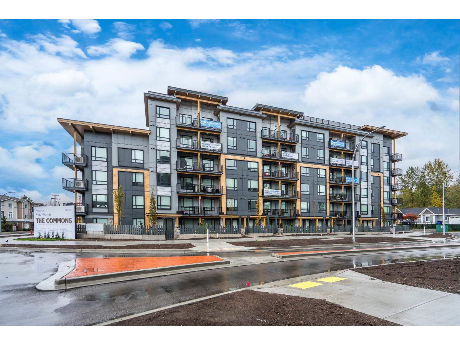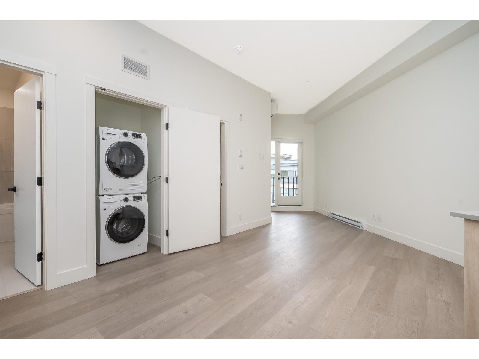 Top-floor brand new 1-bedroom, 1-bath suite at The Commons in Langley's vibrant Willoughby neighbourhood. Offering 610 sq. ft. of modern living with soaring 10+ ft ceilings, this bright and airy home features an open-concept layout, large windows, and a private balcony with elevated views. The kitchen is equipped with stainless steel appliances, quartz countertops, and sleek cabinetry, while the spa-inspired bathroom adds a contemporary touch. Includes in-suite washer/dryer and 1 secure underground parking stall. Residents enjoy modern building amenities with secure parking, bike storage, and community spaces. Steps to Willoughby Town Centre shops, dining, and services, plus parks, recreation, and fitness studios. Easy access to Hwy 1, Golden Ears Bridge, and transit! (id:52823)