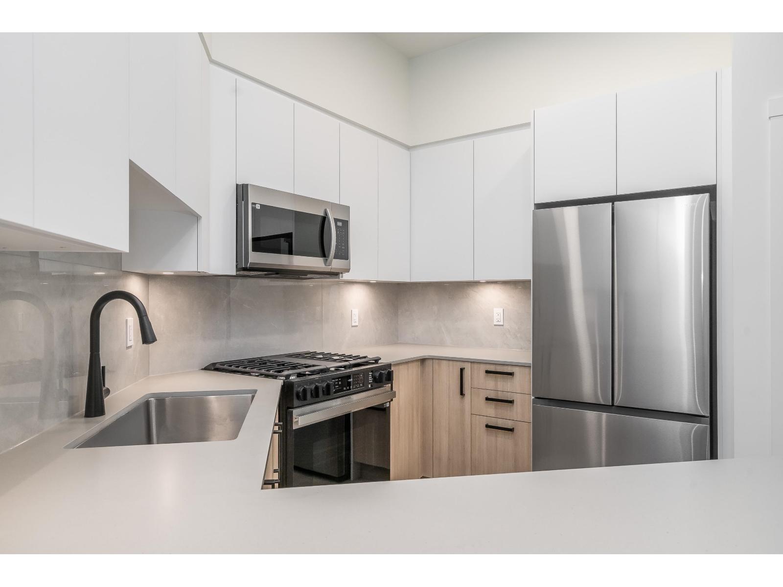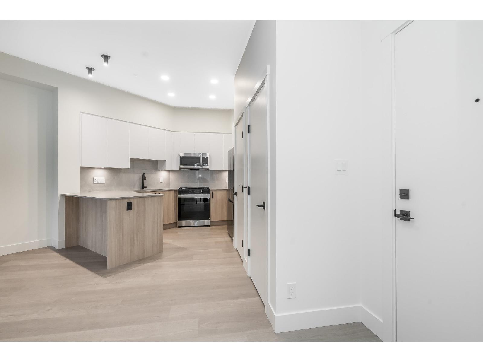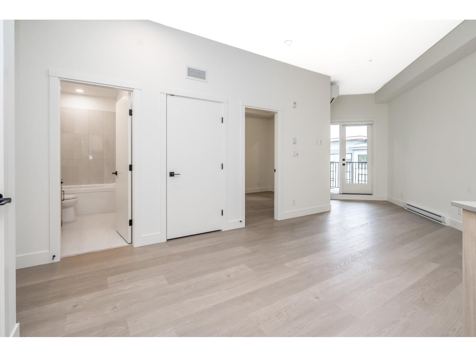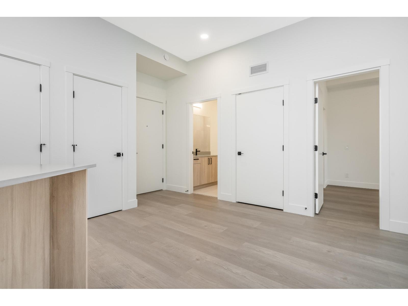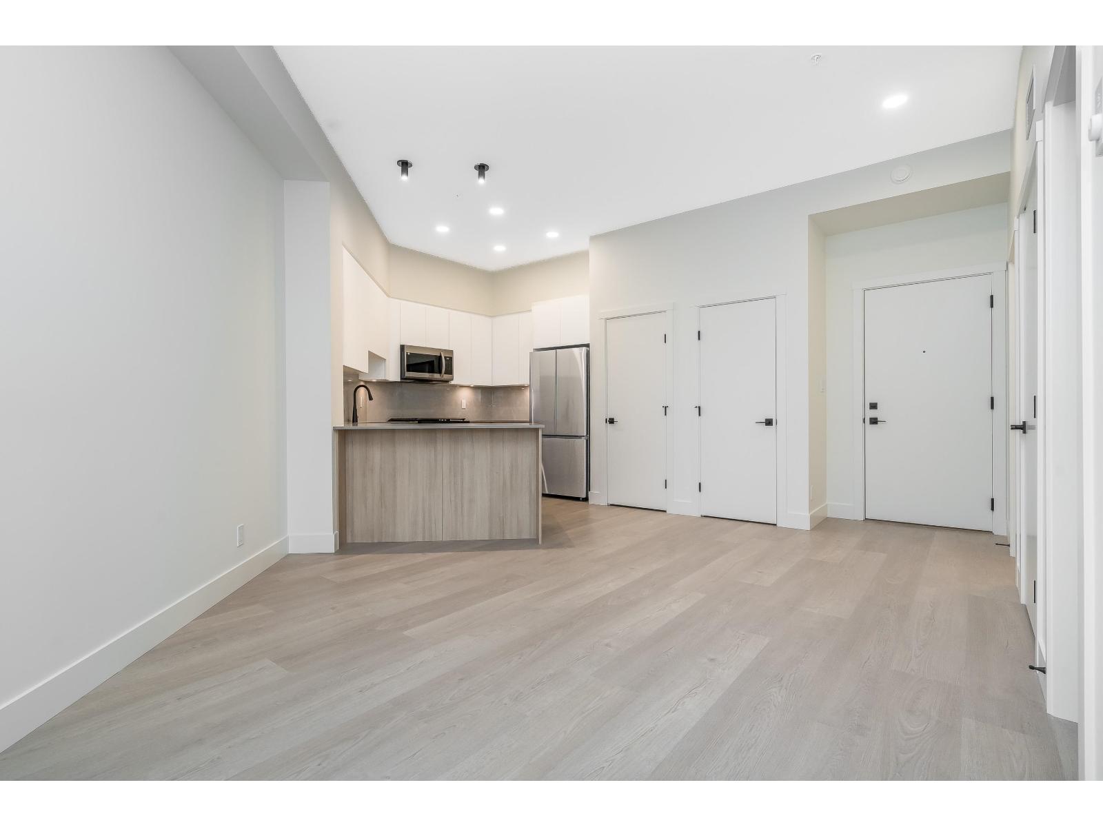 Top-floor brand new 1-bedroom, 1-bath suite at The Commons in Langley's vibrant Willoughby neighbourhood. Offering 610 sq. ft. of modern living with soaring 10+ ft ceilings, this bright and airy home features an open-concept layout, large windows, and a private balcony with elevated views. The kitchen is equipped with stainless steel appliances, quartz countertops, and sleek cabinetry, while the spa-inspired bathroom adds a contemporary touch. Includes in-suite washer/dryer and 1 secure underground parking stall. Residents enjoy modern building amenities with secure parking, bike storage, and community spaces. Steps to Willoughby Town Centre shops, dining, and services, plus parks, recreation, and fitness studios. Easy access to Hwy 1, Golden Ears Bridge, and transit! (id:52823)